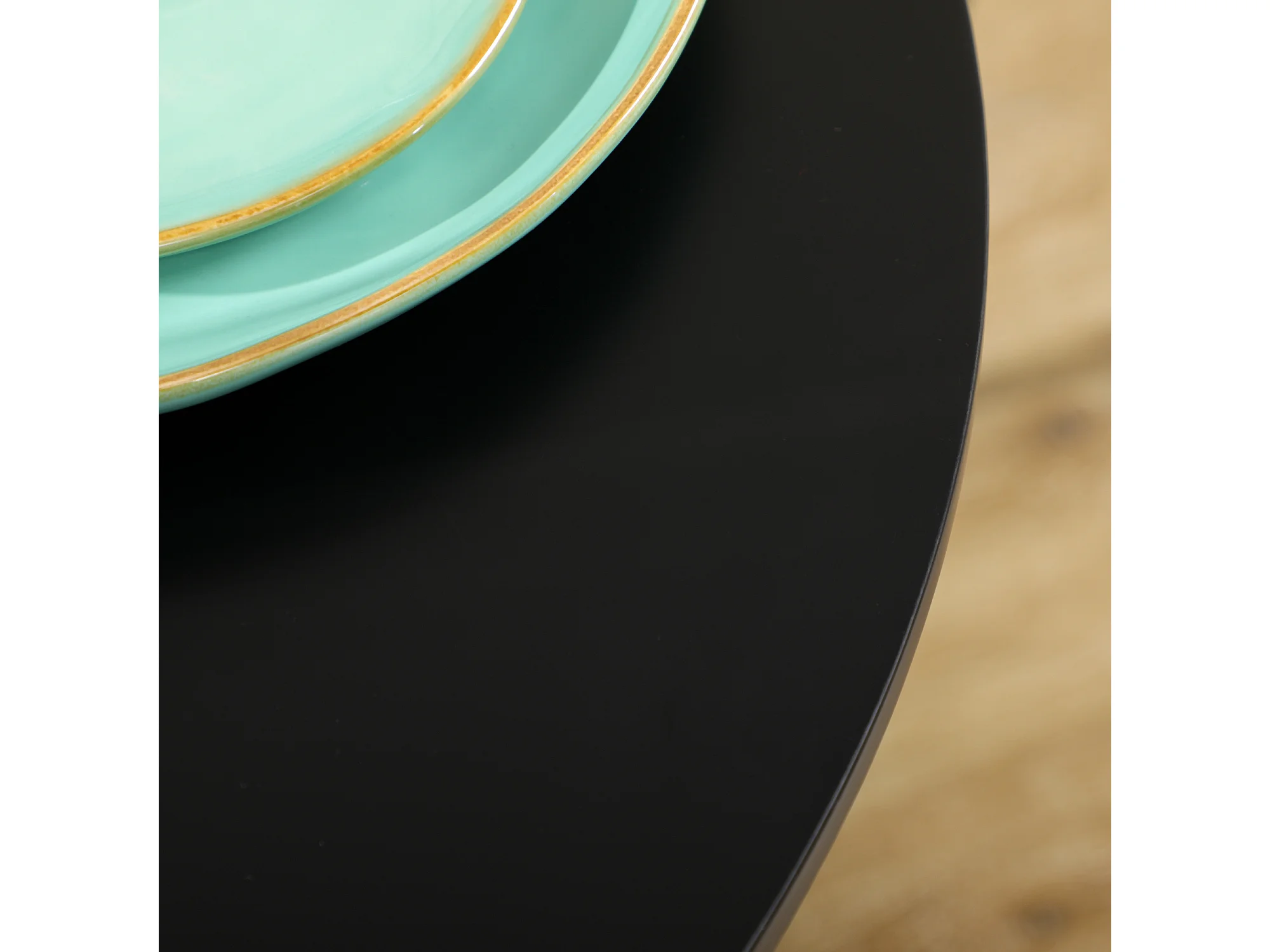 Table à manger ronde avec pied en acier , design moderne, pour 2 personnes, MDF, noir (Ø78x75 cm)