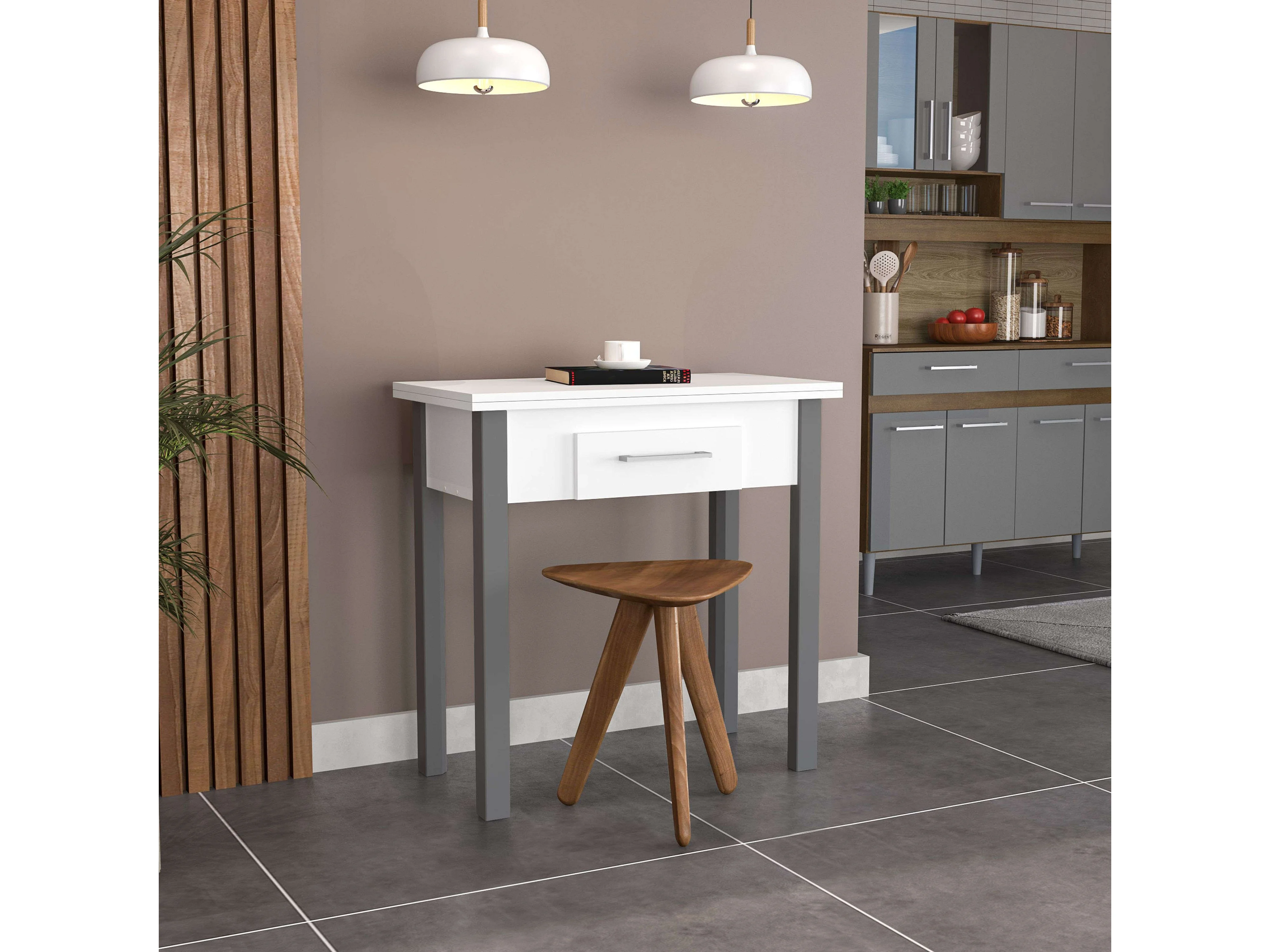Table de cuisine Sendai avec tiroir pour 2 personnes en mélaminé blanc et gris 80x75x40 cm