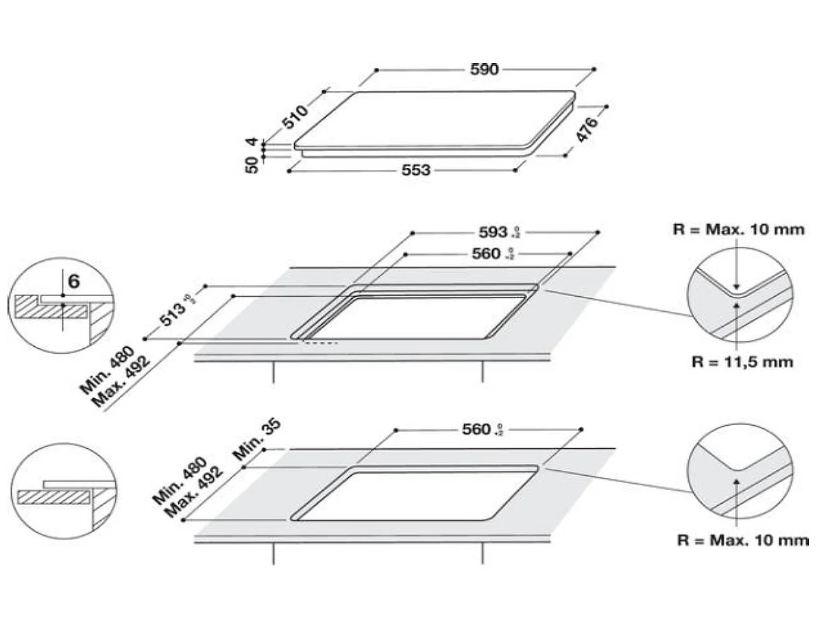 Whirlpool Table de cuisson induction 60cm 3 feux 7200w - wss3960ne