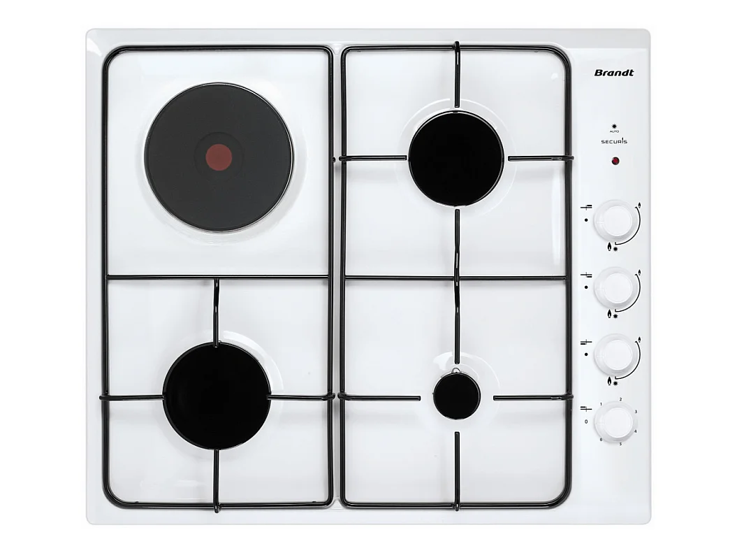Brandt Table de cuisson mixte gaz et électrique 58cm 4 feux blanc - bpe6411wm