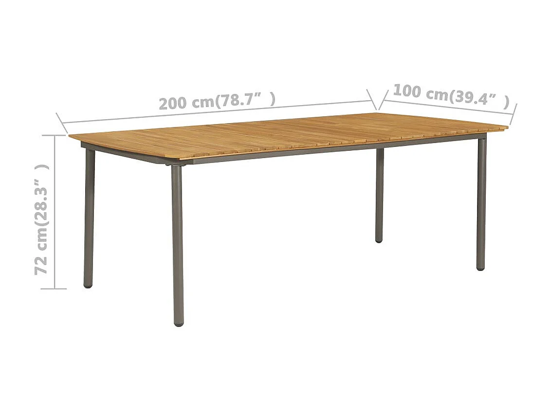 Table de jardin 200x100x72 Bois d'acacia solide et acier 2