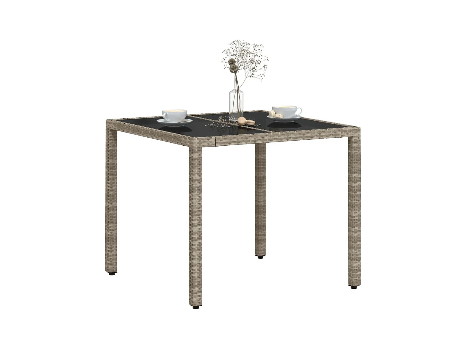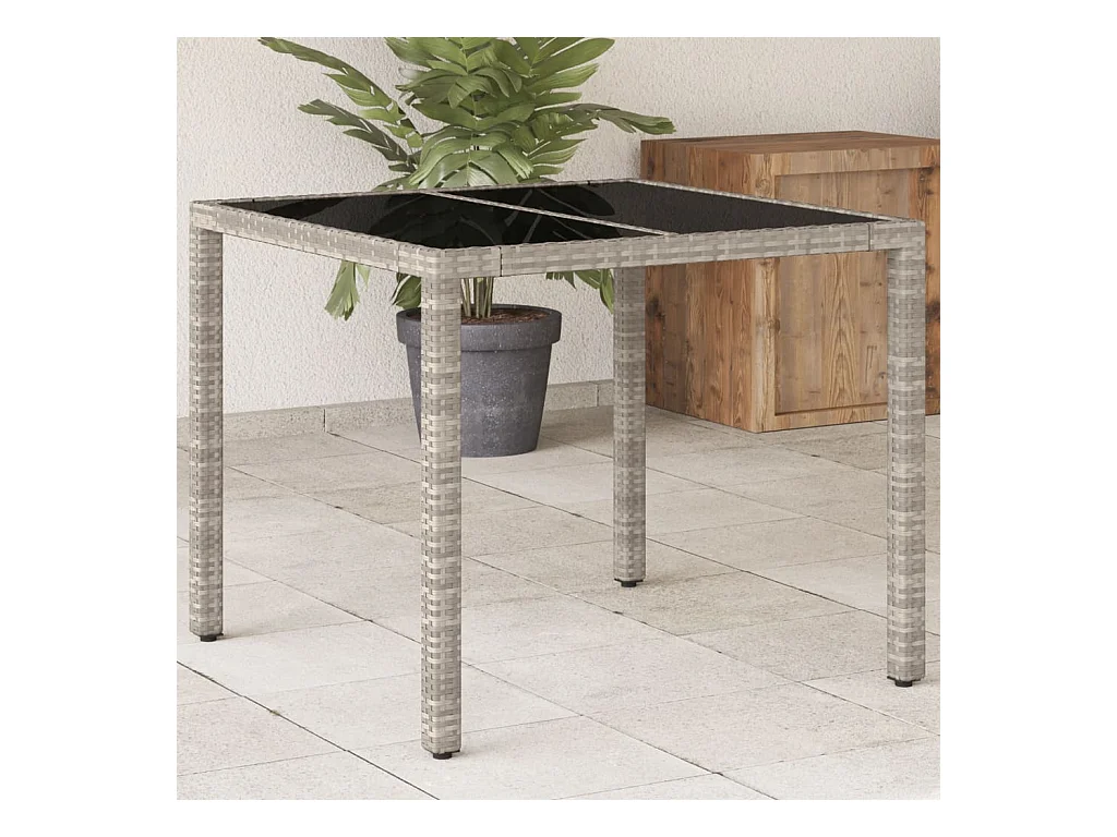 Table de jardin dessus en verre Gris 90x90x75 cm Résine tressée FR704186