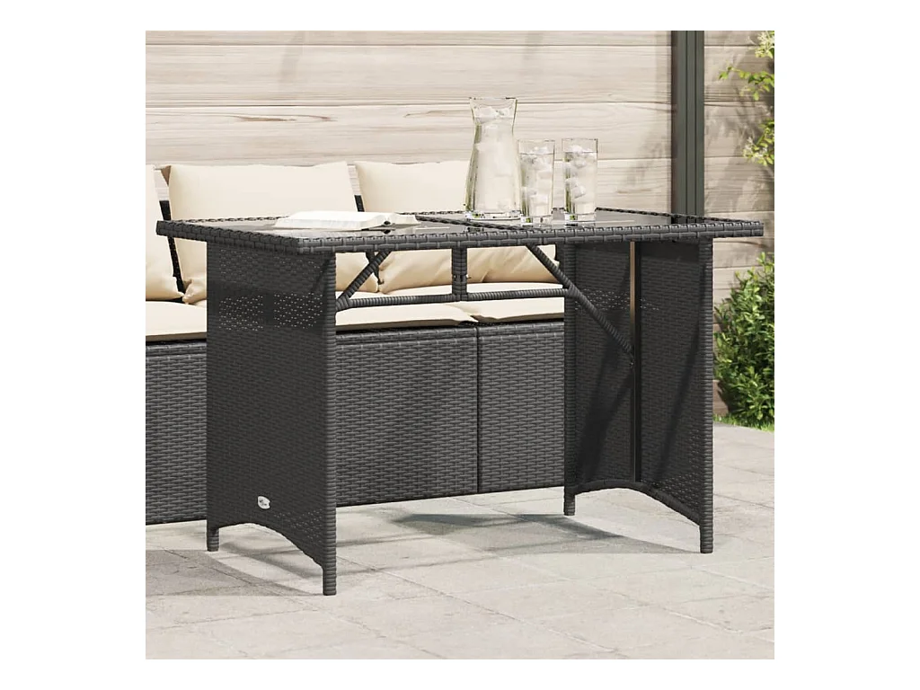 Table de jardin avec dessus en verre noir 110x68x70 poly rotin FR992942