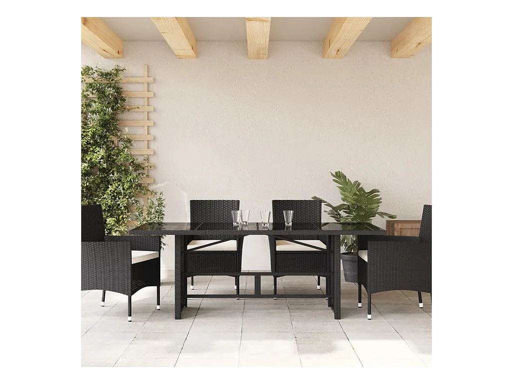 Table de jardin avec dessus en verre noir résine tressée FR415604