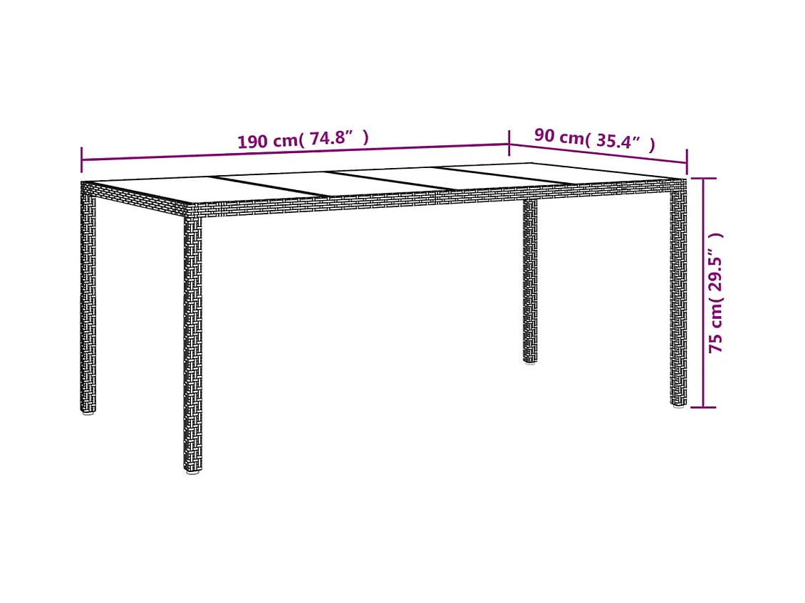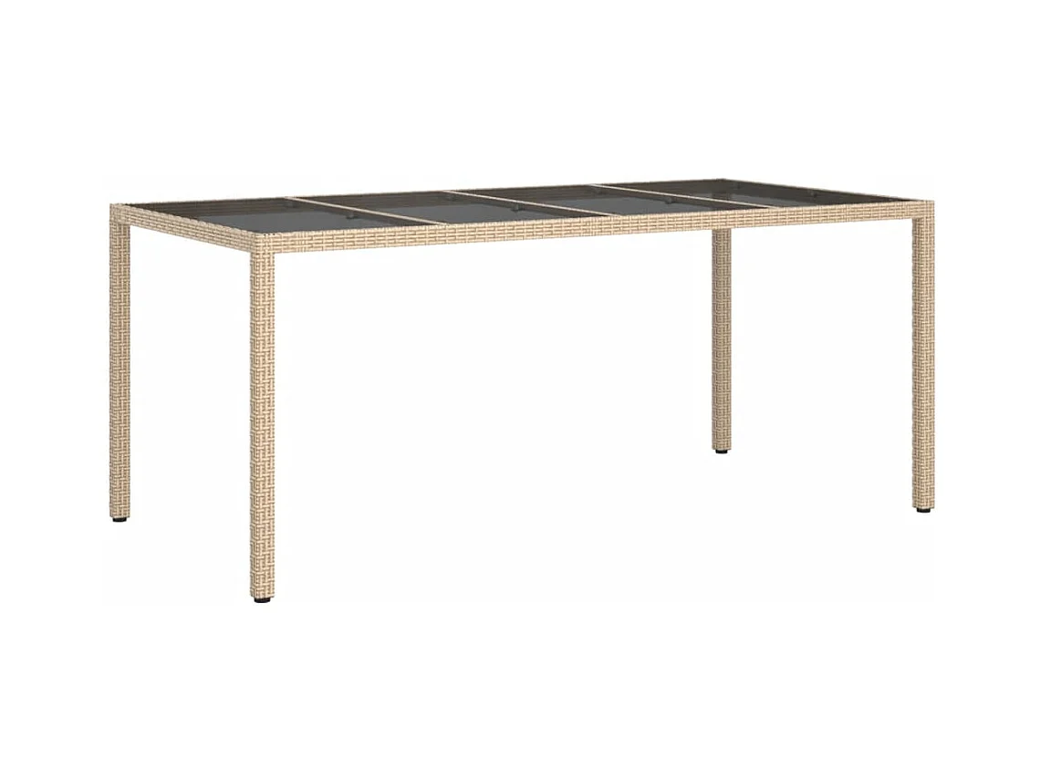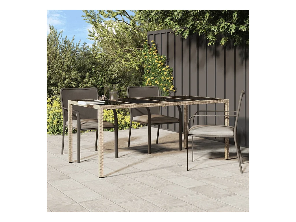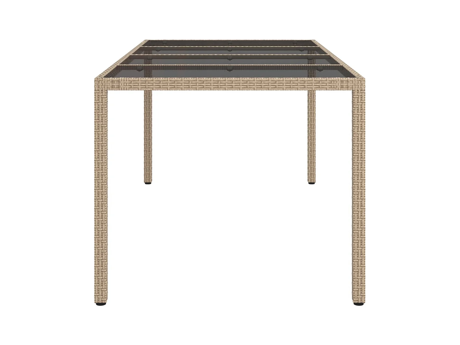 Table de jardin Beige 190x90x75 cm Verre trempé/résine tressée