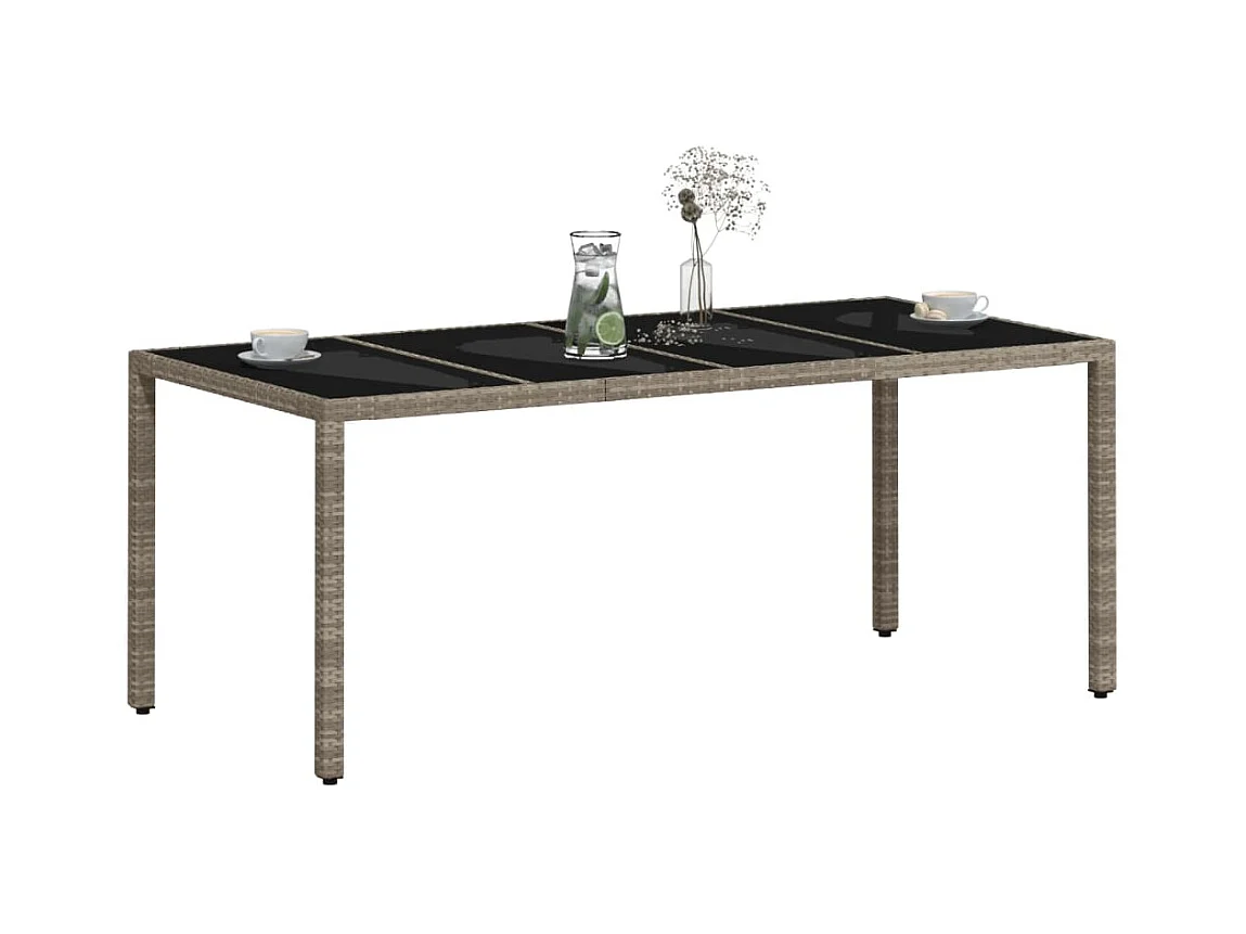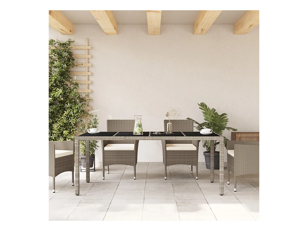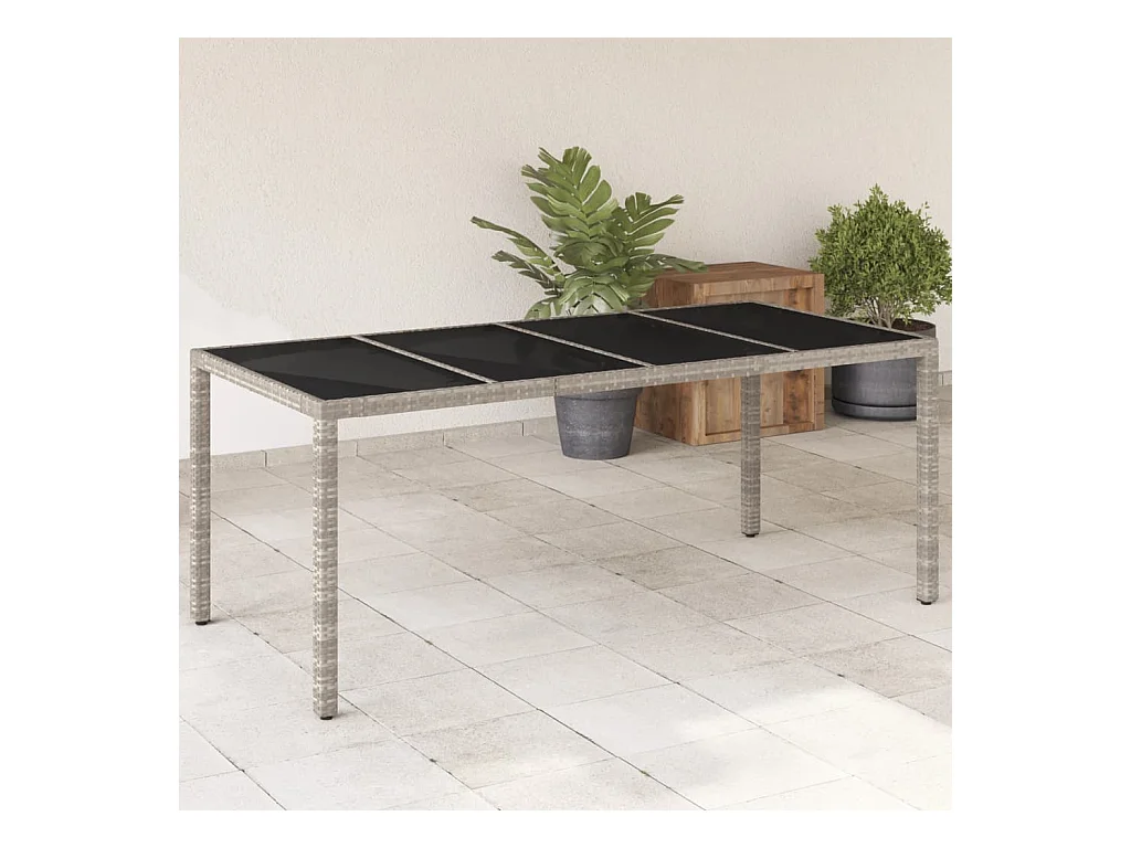 Table de jardin dessus en verre gris clair résine tressée FR441926
