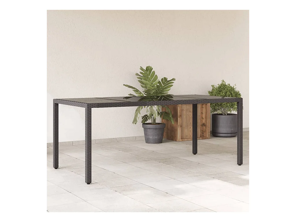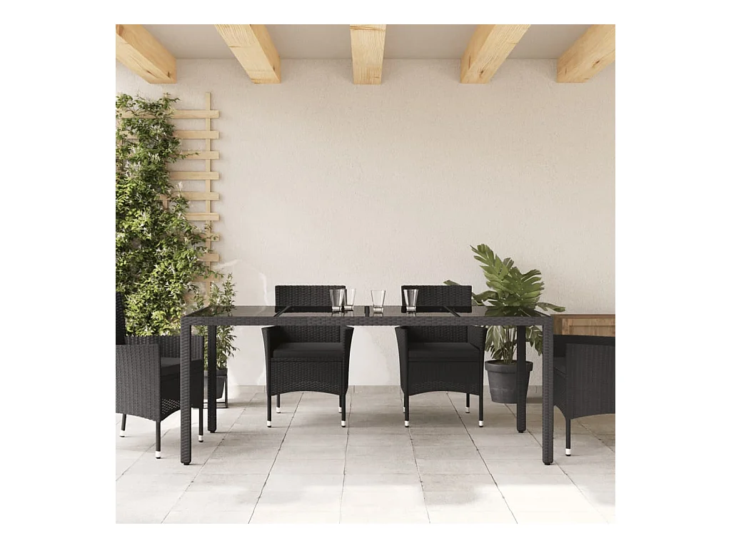 Table de jardin dessus en verre Noir 190x90x75cm Résine tressée FR970759