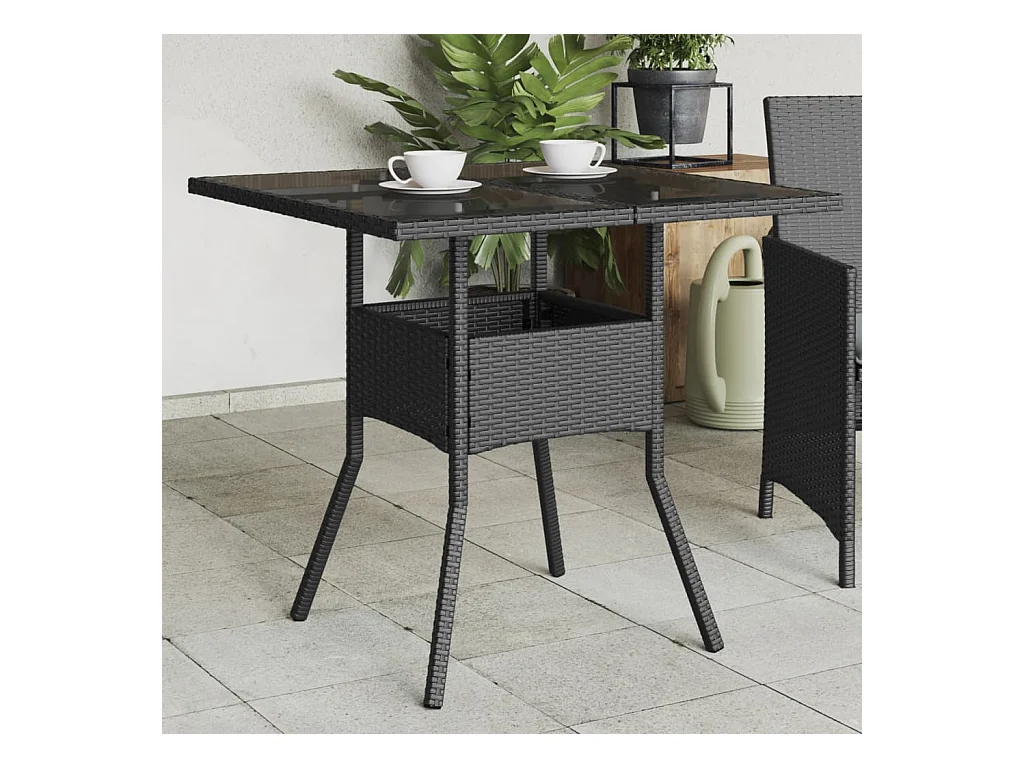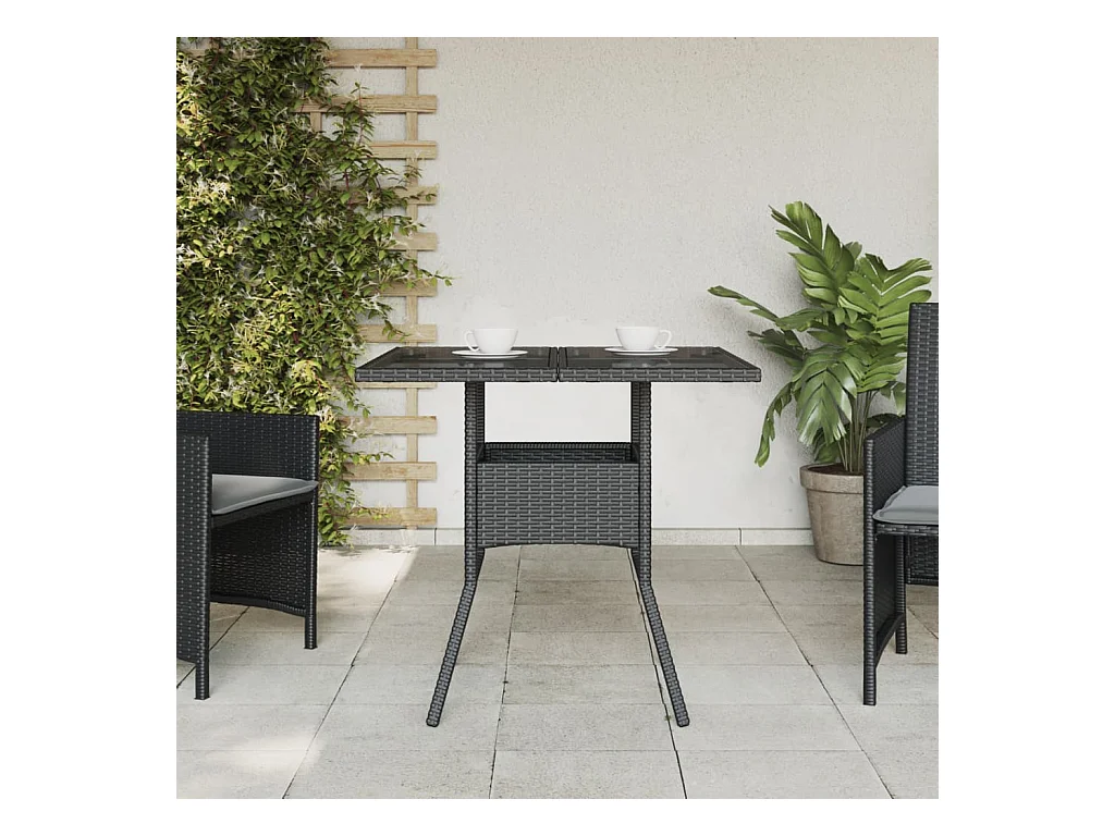Table de jardin dessus en verre noir 80x80x75 cm résine tressée FR933664