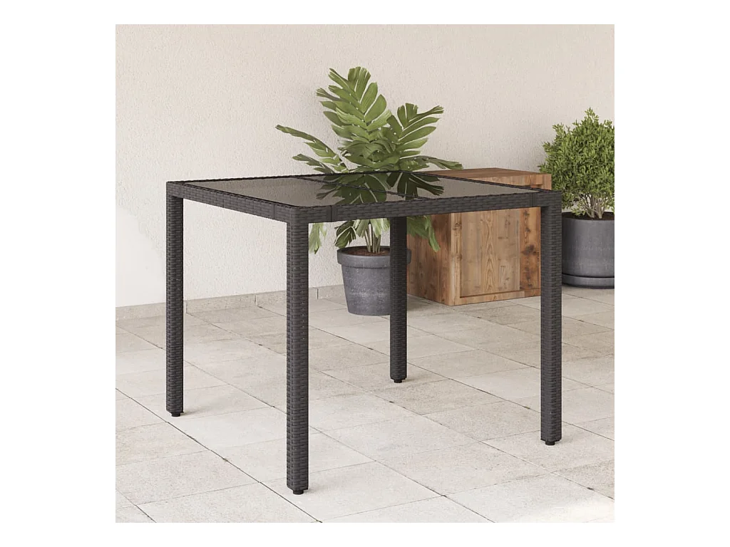 Table de jardin dessus en verre Noir 90x90x75 cm Résine tressée FR334320