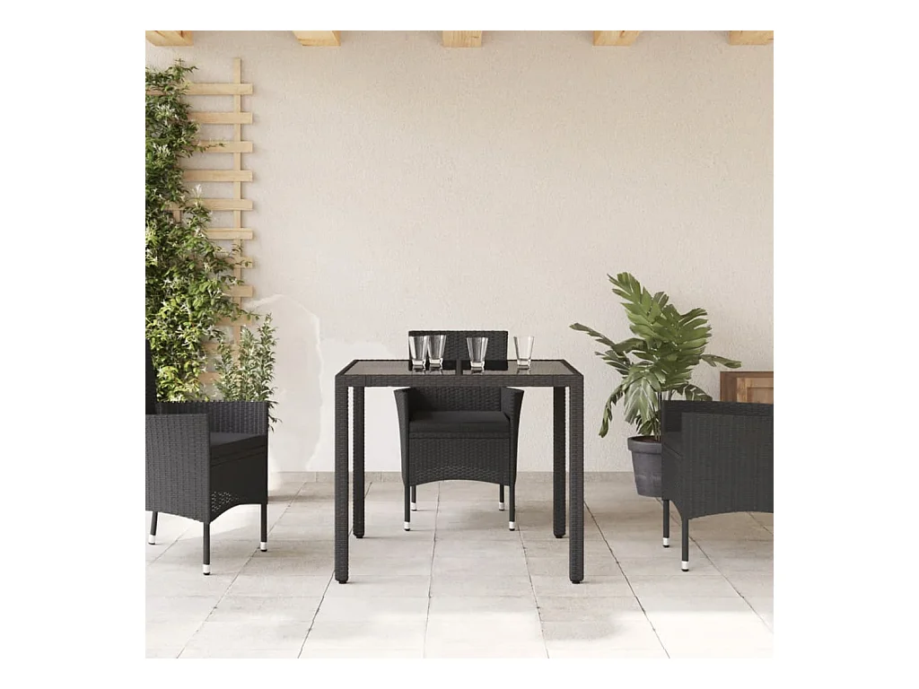 Table de jardin dessus en verre Noir 90x90x75 cm Résine tressée FR764425