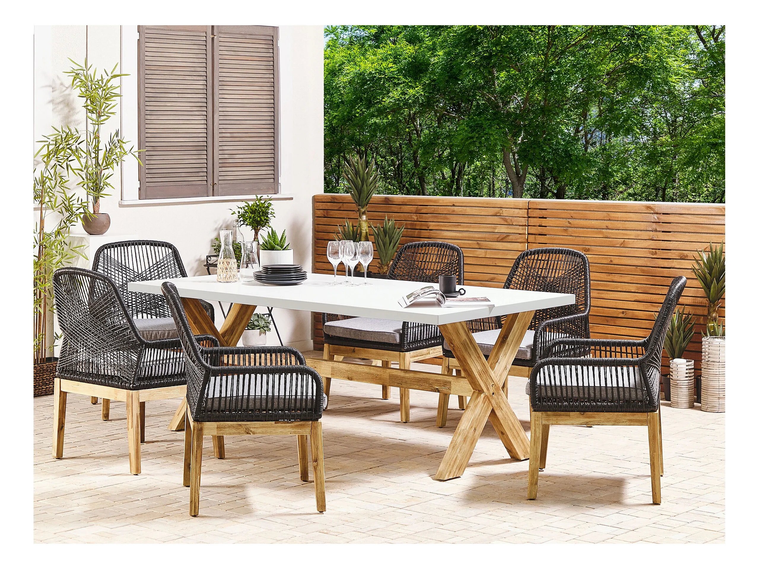 Table de salle à manger de jardin OLBIA 200 cm 100 cm Béton Blanc
