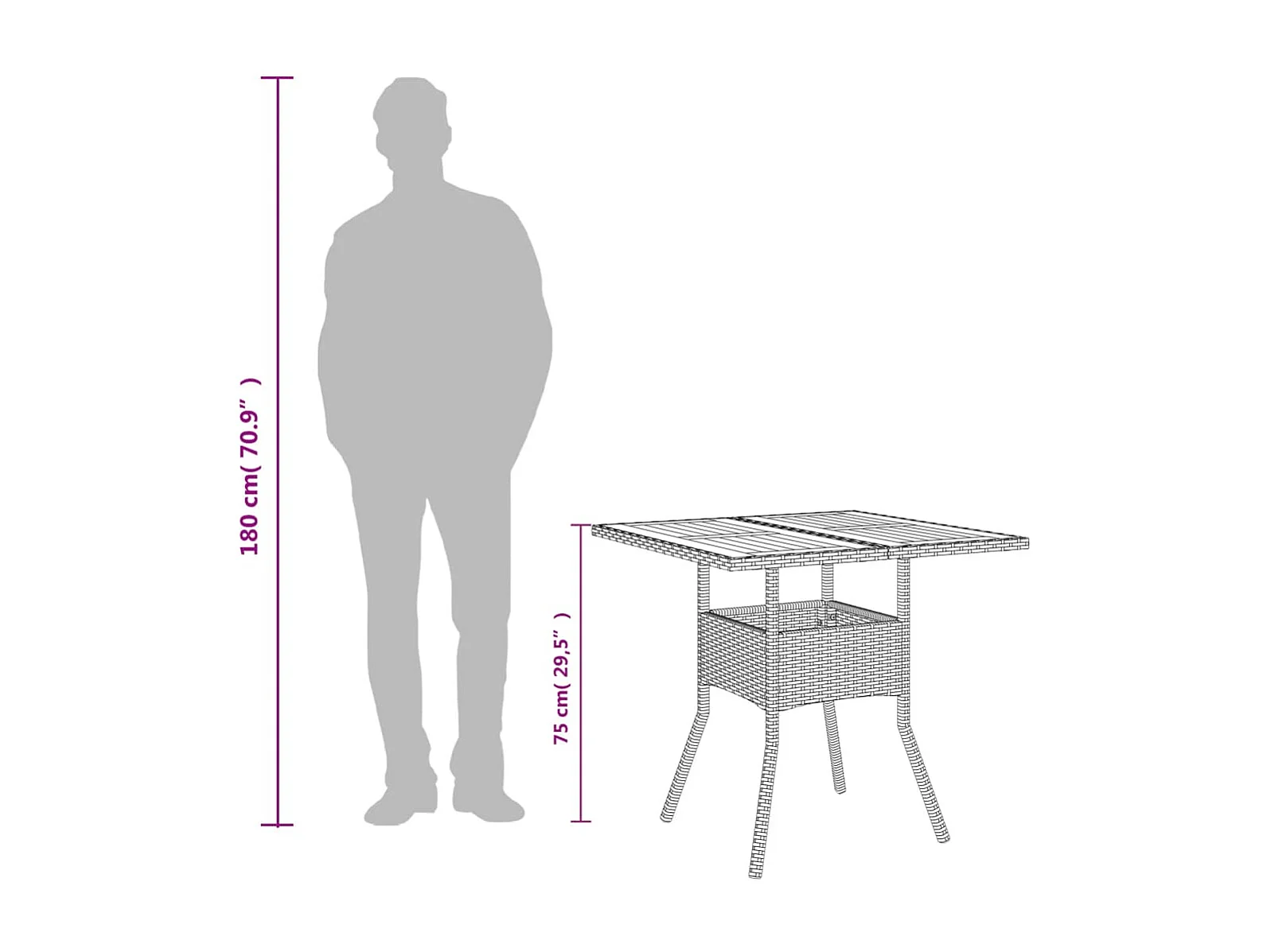Table de jardin gris 80x80x74 résine tressée et bois acacia
