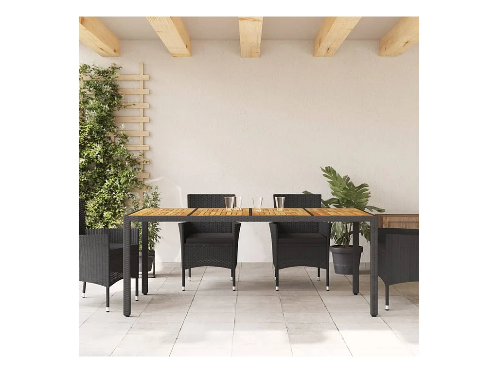 Table de jardin et dessus en bois d'acacia noir résine tressée FR115430