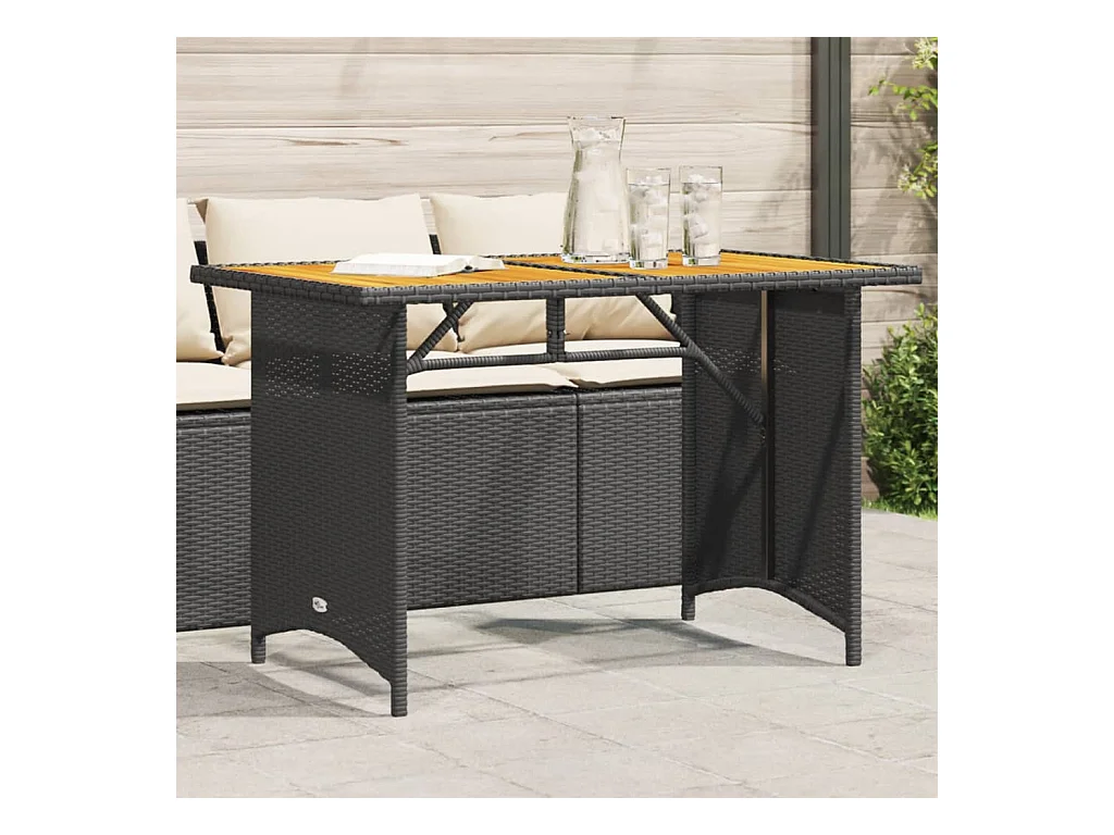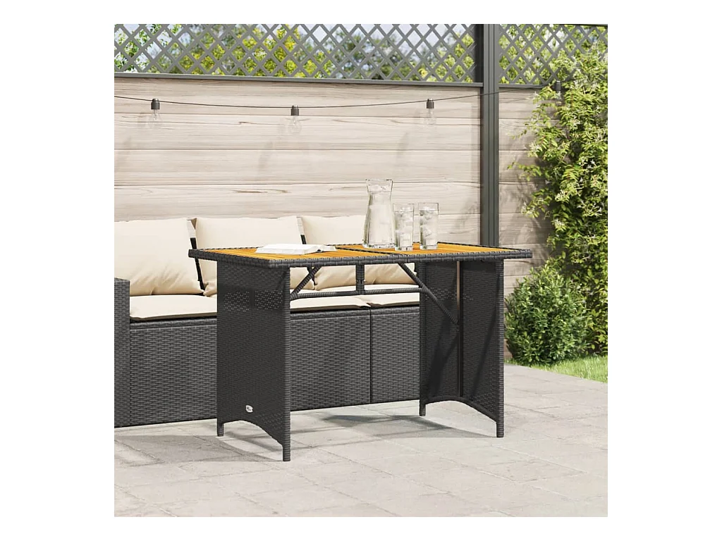 Table de jardin noir 110x110x71 résine tressée et bois acacia