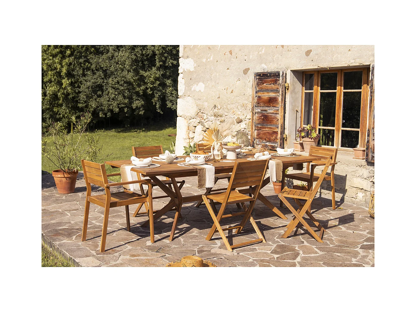 Table de jardin extensible rallonges intégrées en bois massif L180-240 cm SANTO
