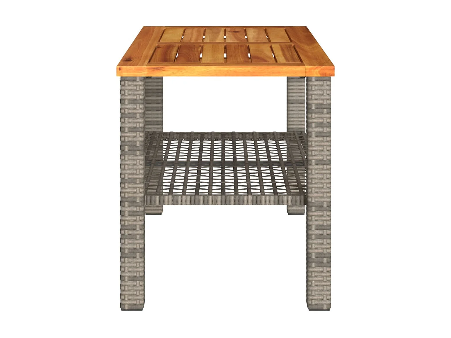 Table de jardin gris 70x38x42 résine tressée et bois acacia