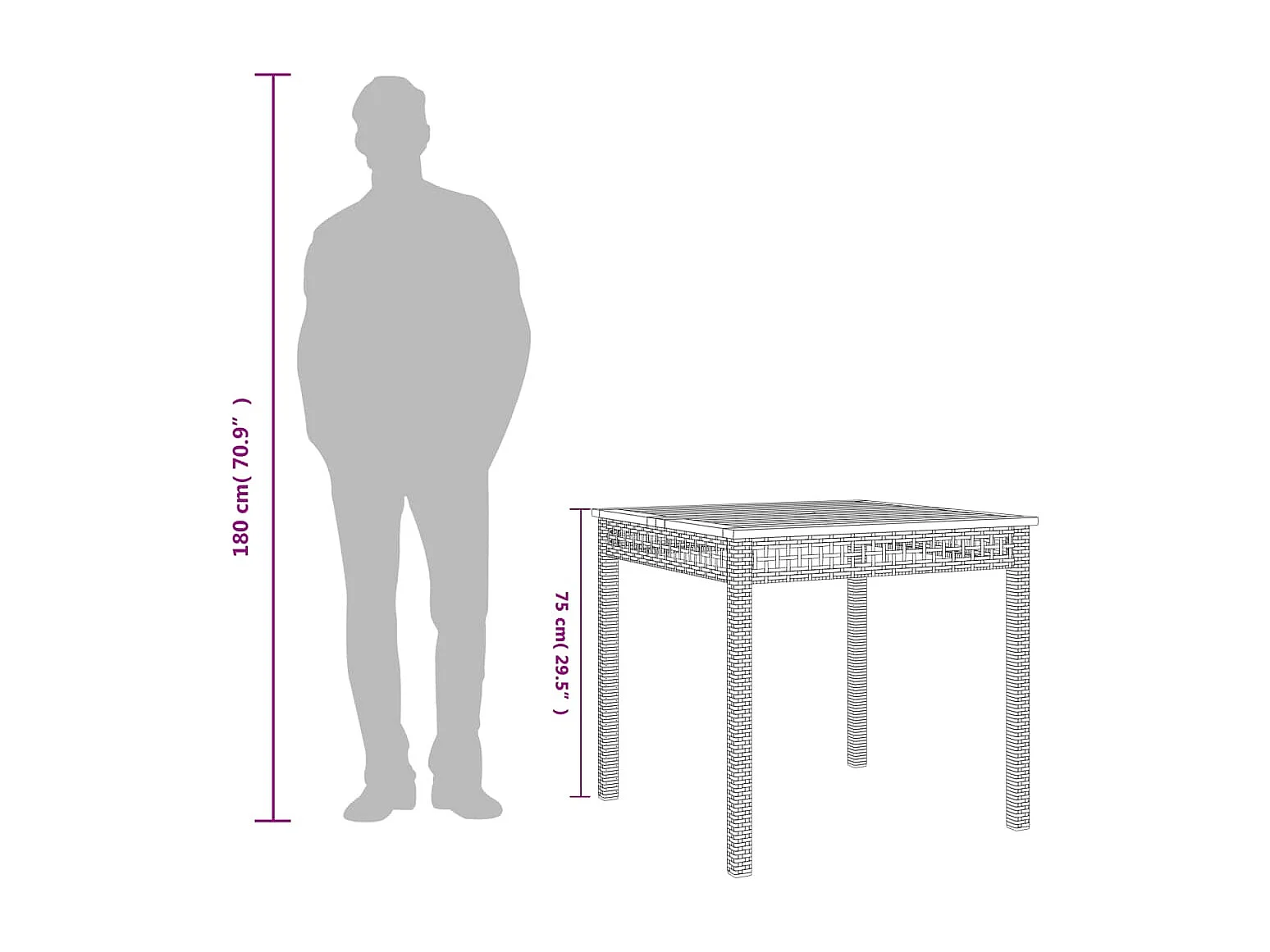 Table de jardin gris 80x80x74 résine tressée et bois acacia