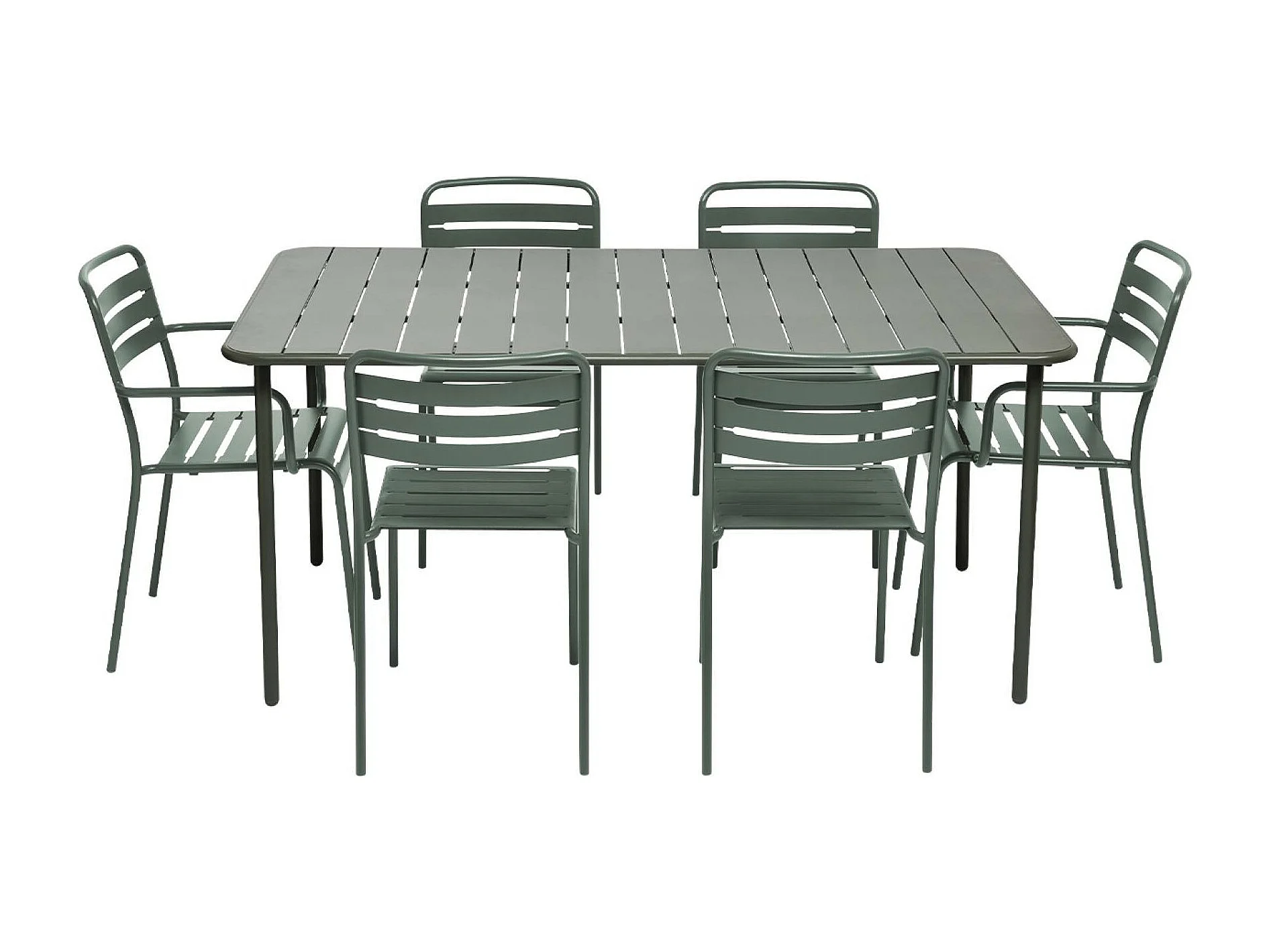 Table de jardin métal + 6 assises kaki. acier traitement anti rouille