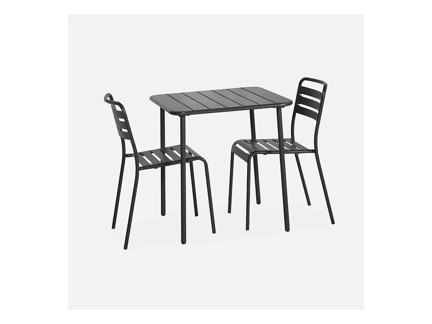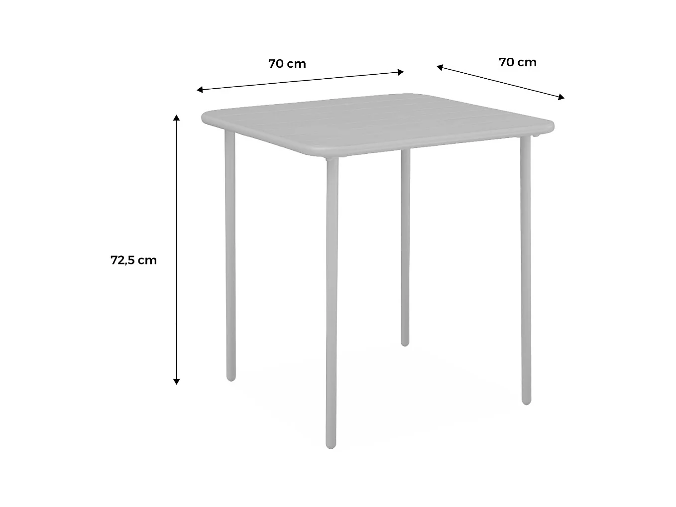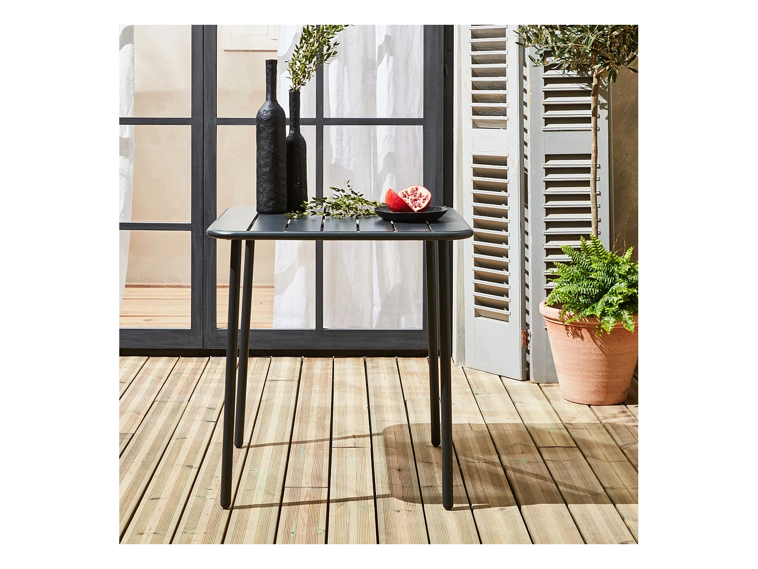 Table de jardin métal 2 places. anthracite. Amelia. 70x70cm. traitement antirouille. lattes et bords arrondis