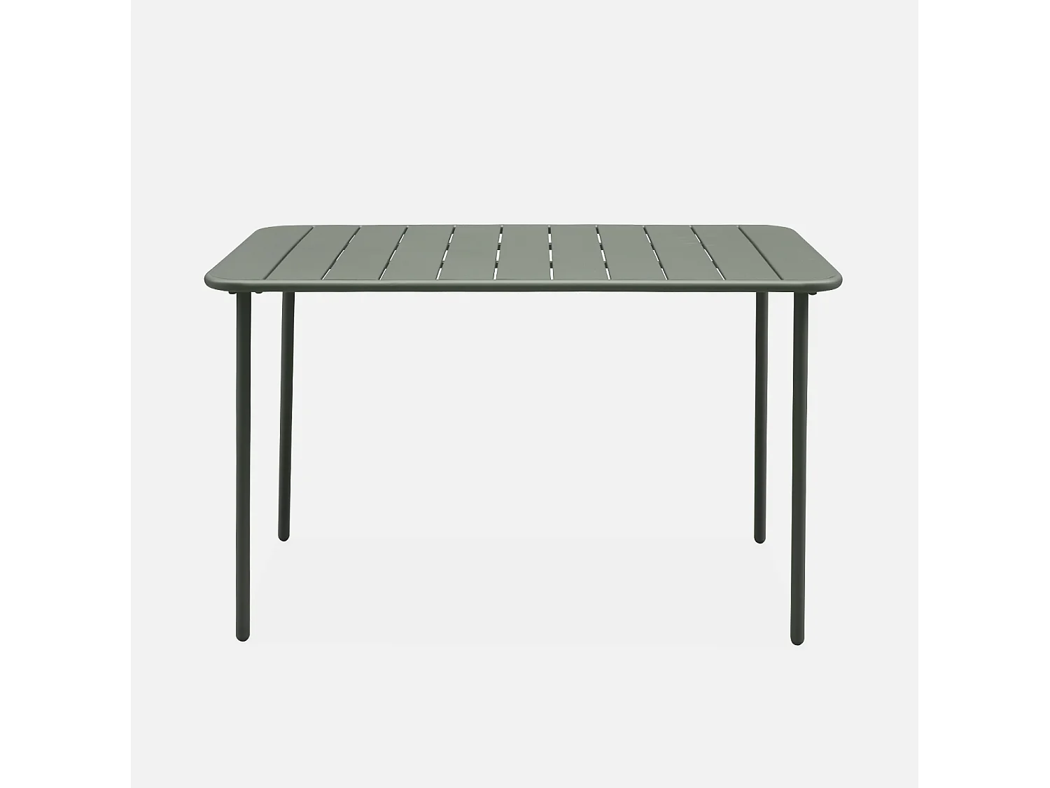 Table de jardin métal 4 places. kaki. Amelia. 120x70cm. traitement antirouille. lattes et bords arrondis