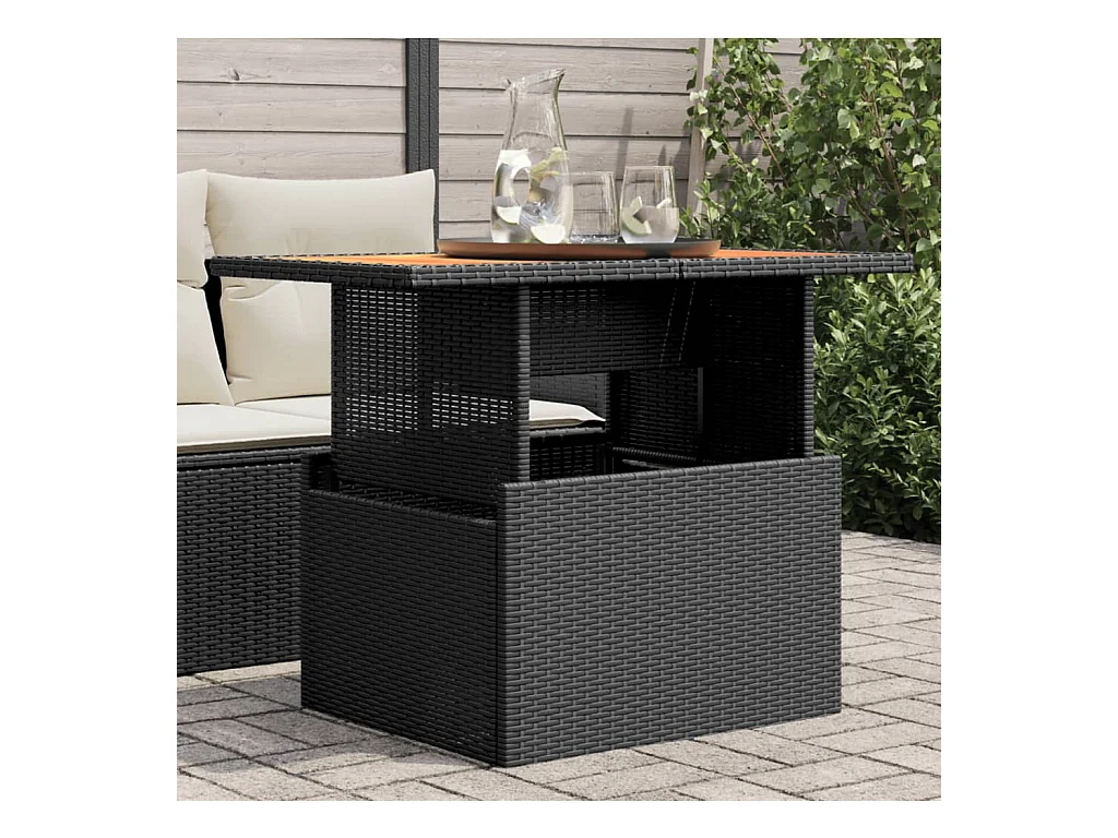 Table de jardin noir 55x55x36 cm résine tressée et bois acacia FR211543