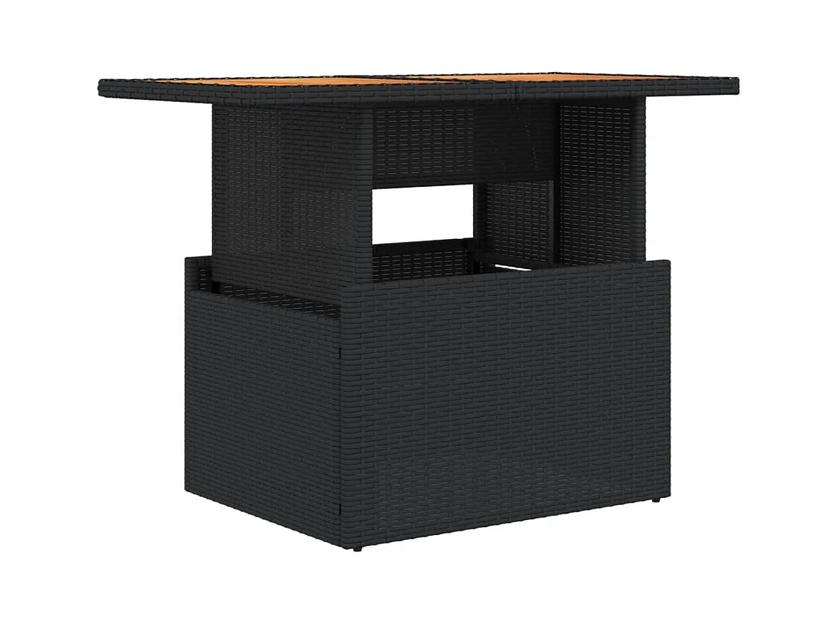 Table de jardin noir 90x55x71 résine tressée et bois acacia
