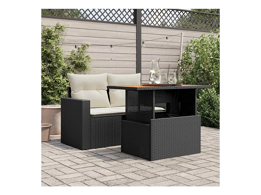 Table de jardin noir 100x55x73 cm résine tressée et bois acacia FR874782