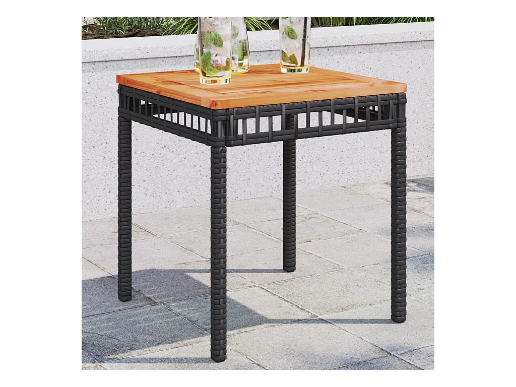 Table de jardin noir 38x38x42 cm résine tressée et bois acacia FR604253