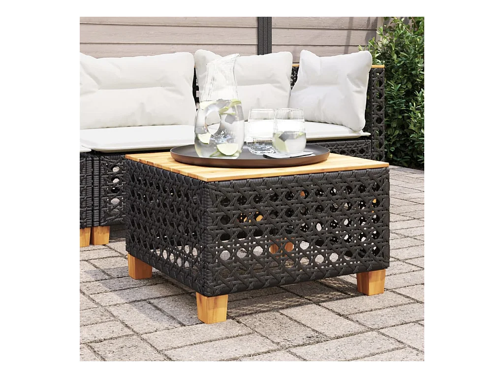 Table de jardin noir 55x55x36 cm résine tressée et bois acacia FR833887