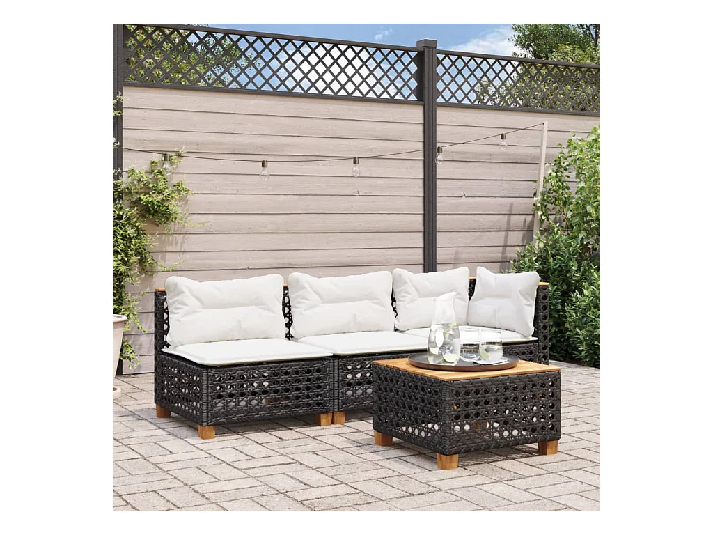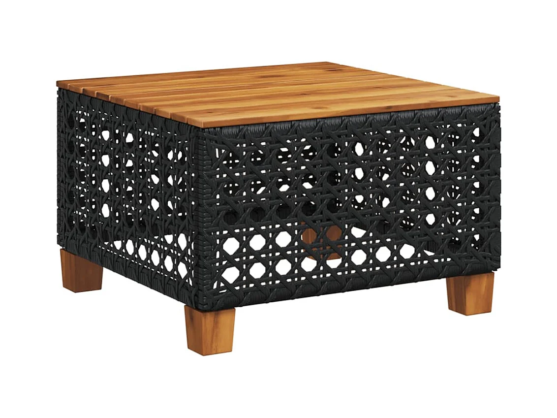 Table de jardin noir 70x38x42 cm résine tressée et bois acacia FR857125