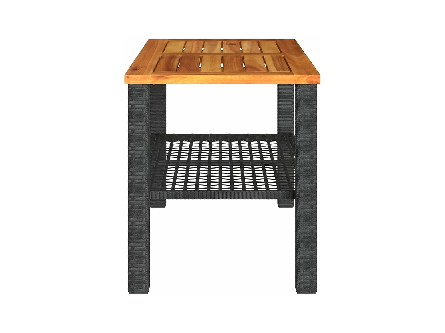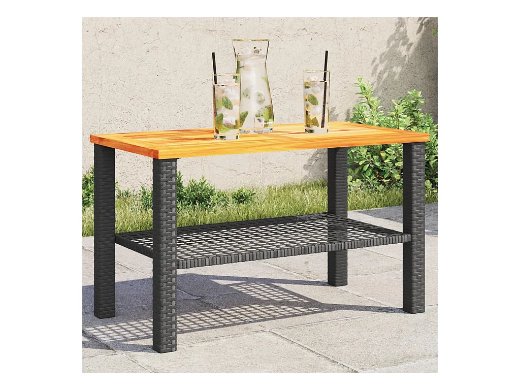Table de jardin noir 70x38x42 résine tressée et bois acacia
