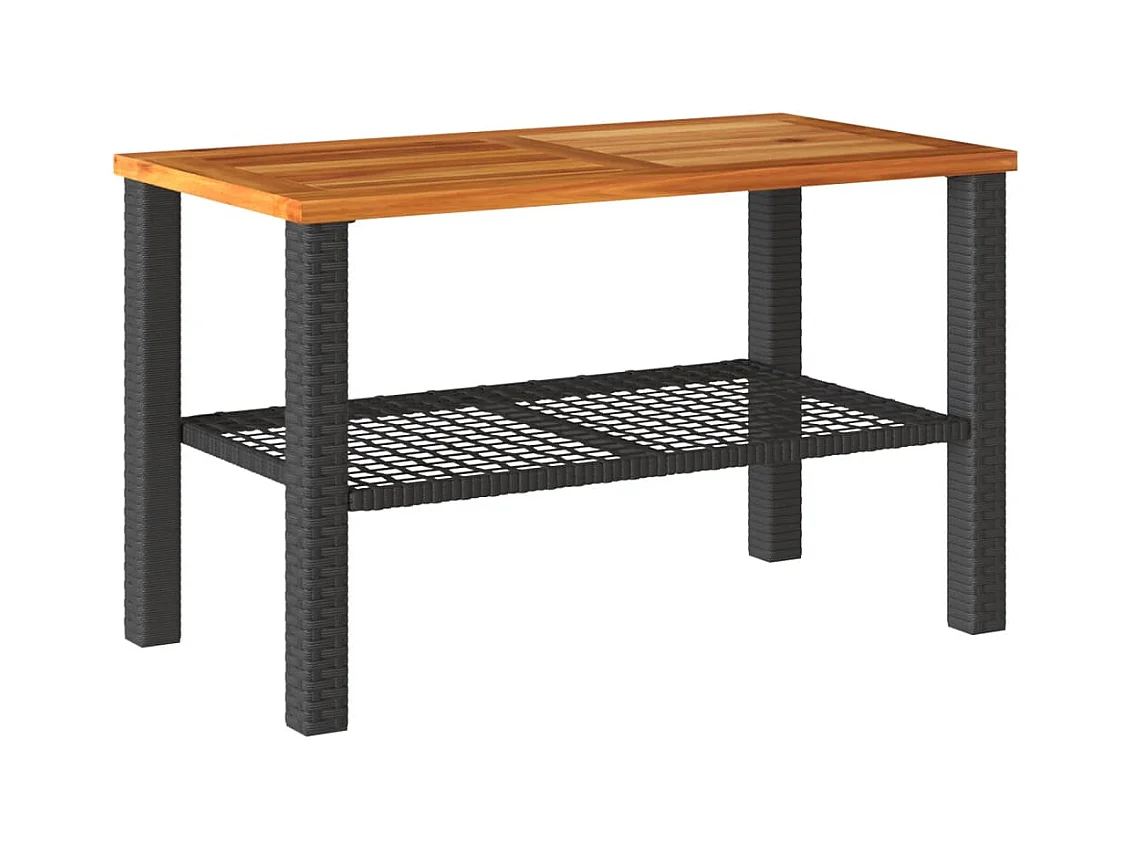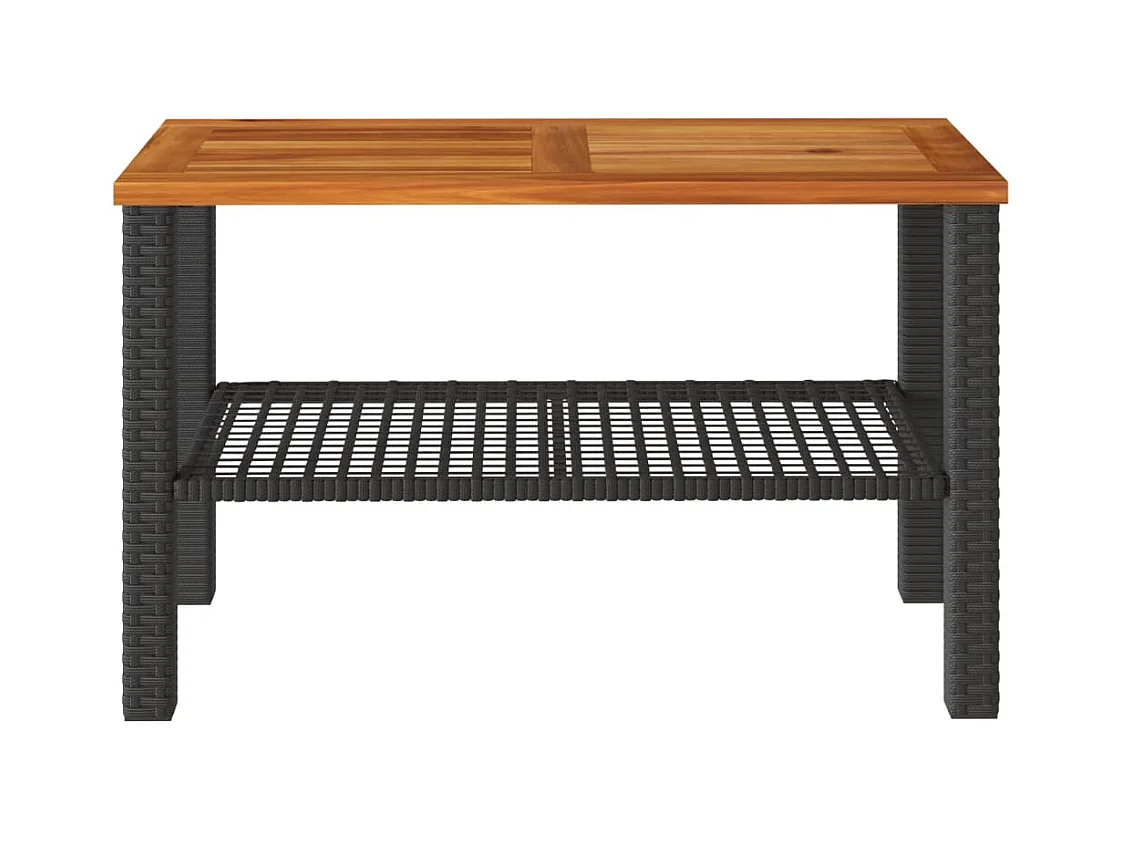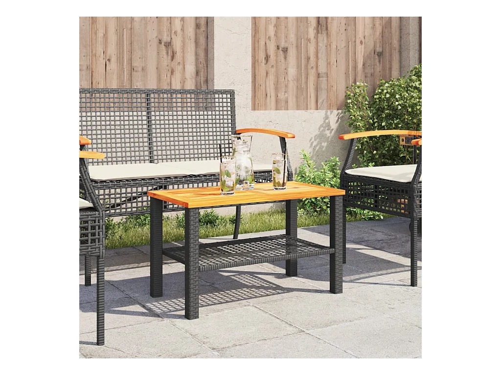 Table de jardin noir 70x70x25 cm résine tressée et bois acacia FR907258