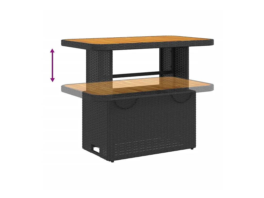 Table de jardin noir 90x55x71 cm résine tressée et bois acacia GHR25268