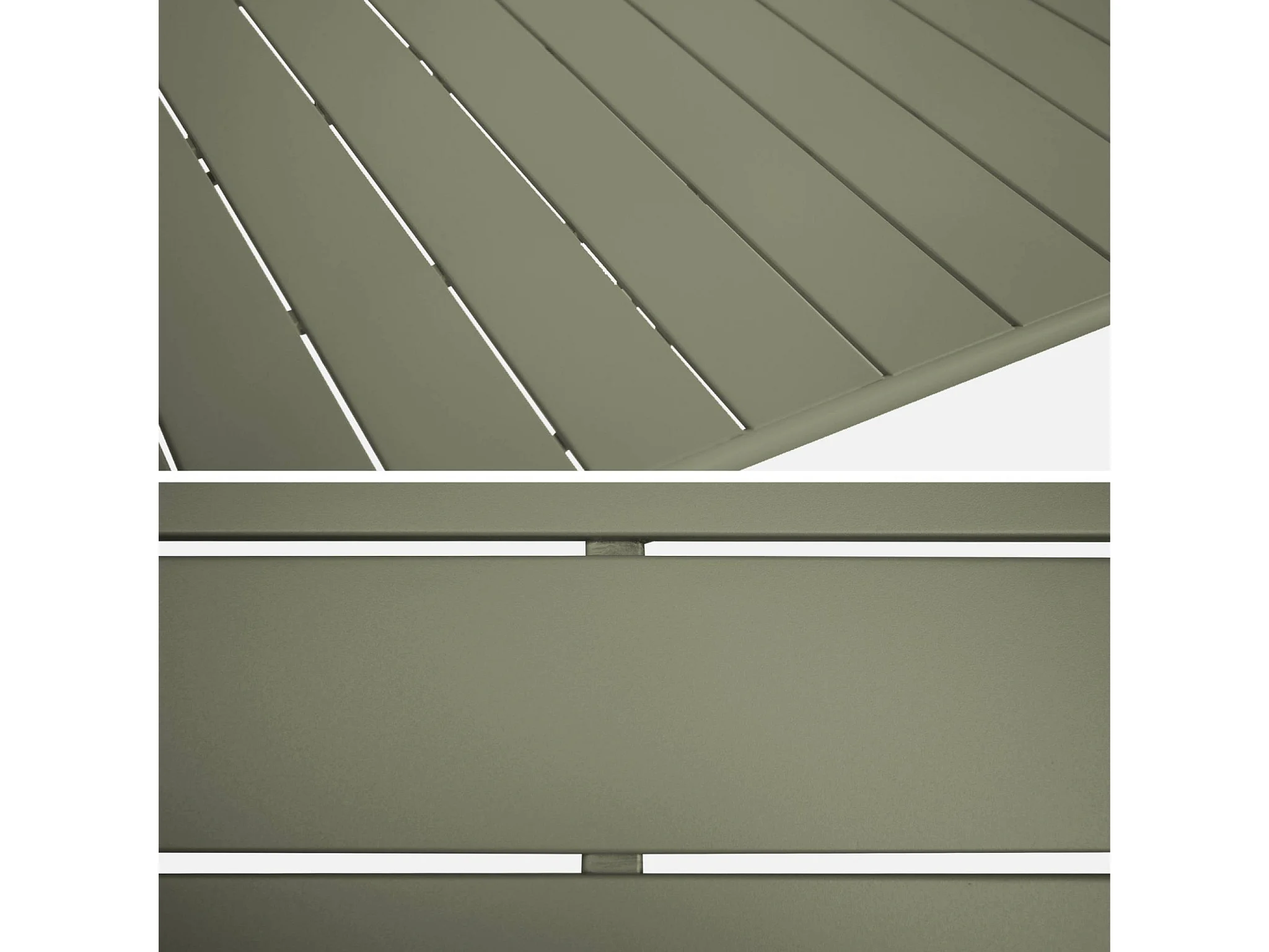Table de jardin pliante métal + 6 assises 2 fauteuils 4 chaises. Amelia. kaki. 141.2 x 80 x 72.5cm