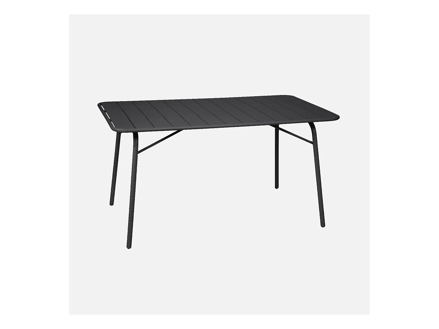 Table de jardin pliante métal 6 places. anthracite. Amelia. 140x80cm. traitement antirouille. lattes et bords arrondis