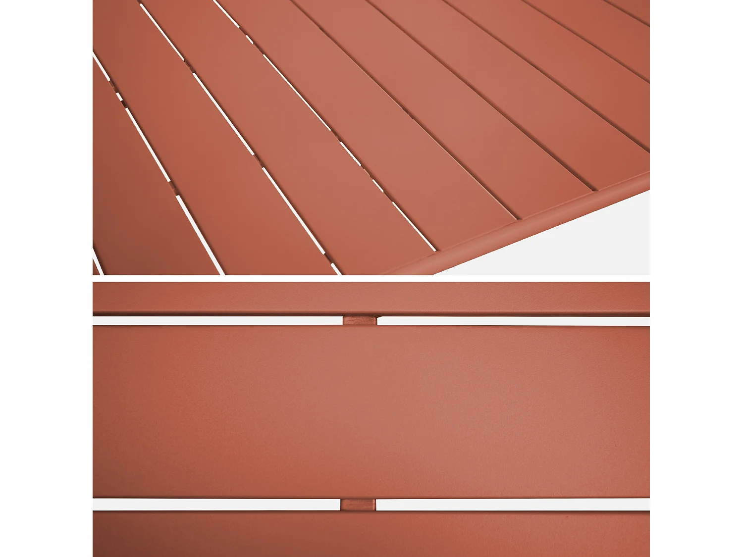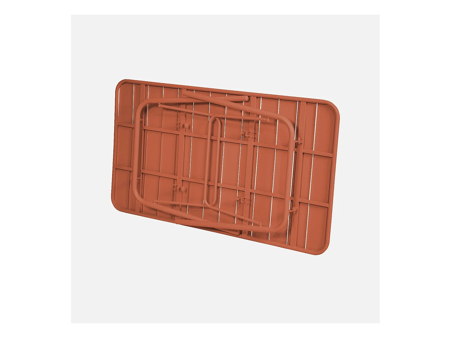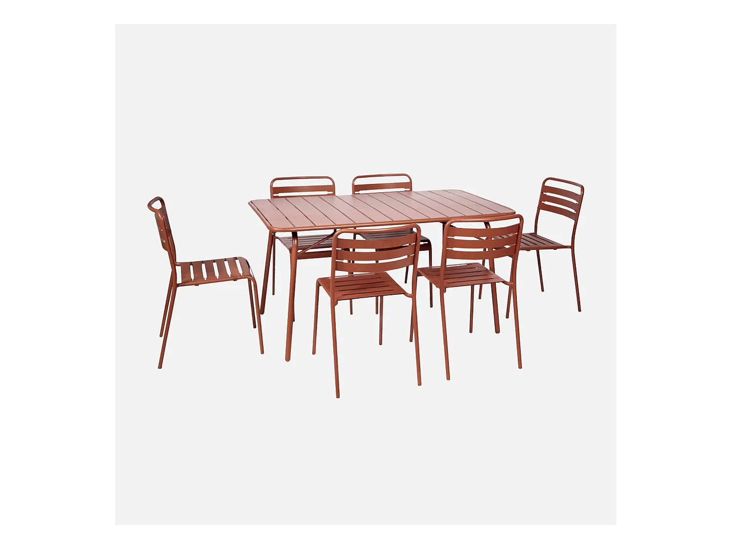 Table de jardin pliante métal + 6 assises. Amelia. terracotta. 141.2 x 80 x 72.5cm