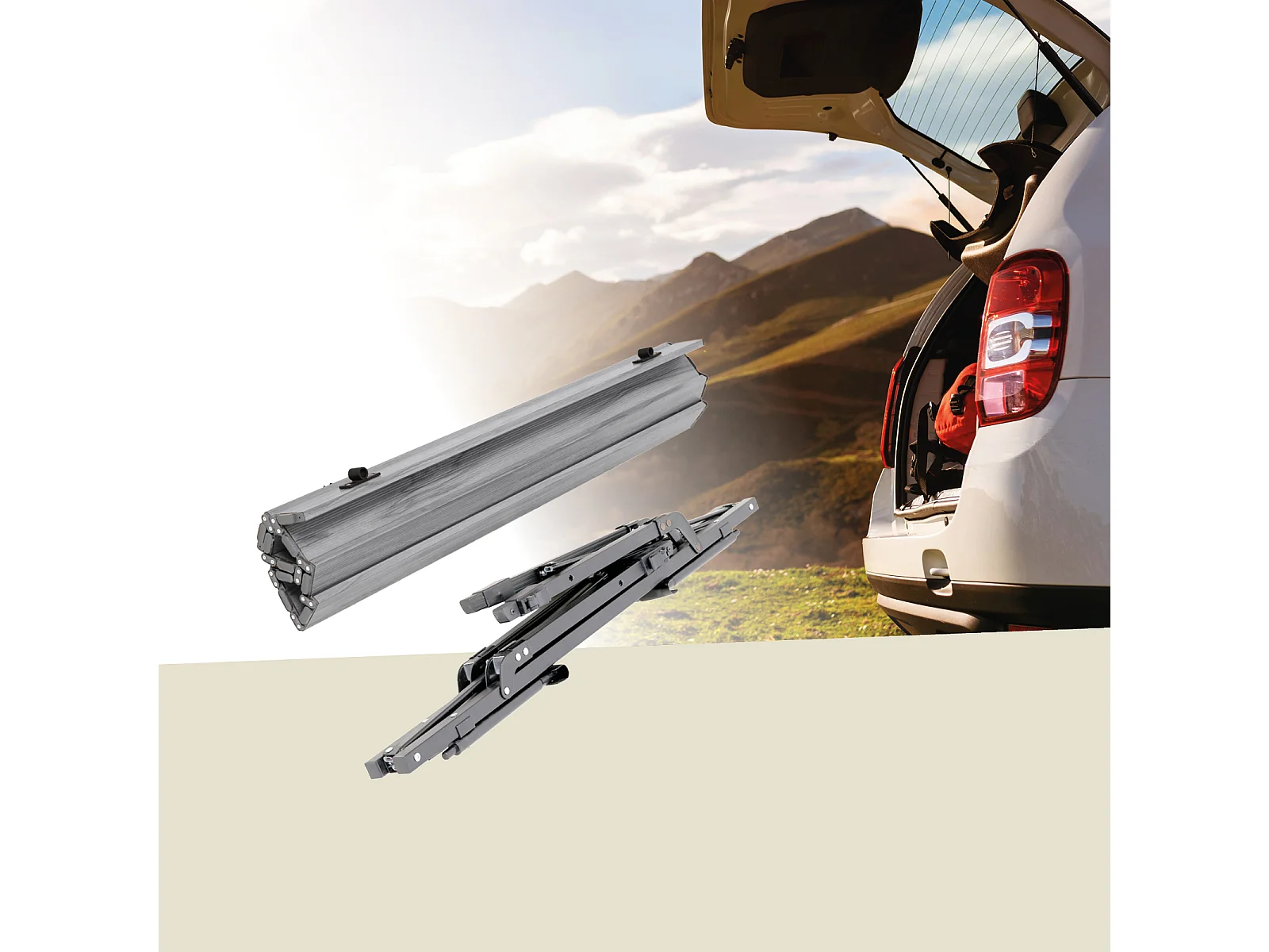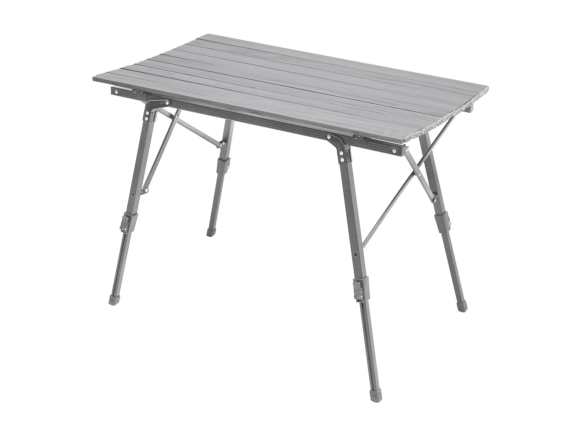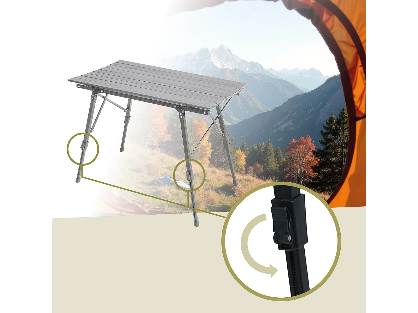 Table de camping pliante aluminium argent plateau enroulable + sac de transport