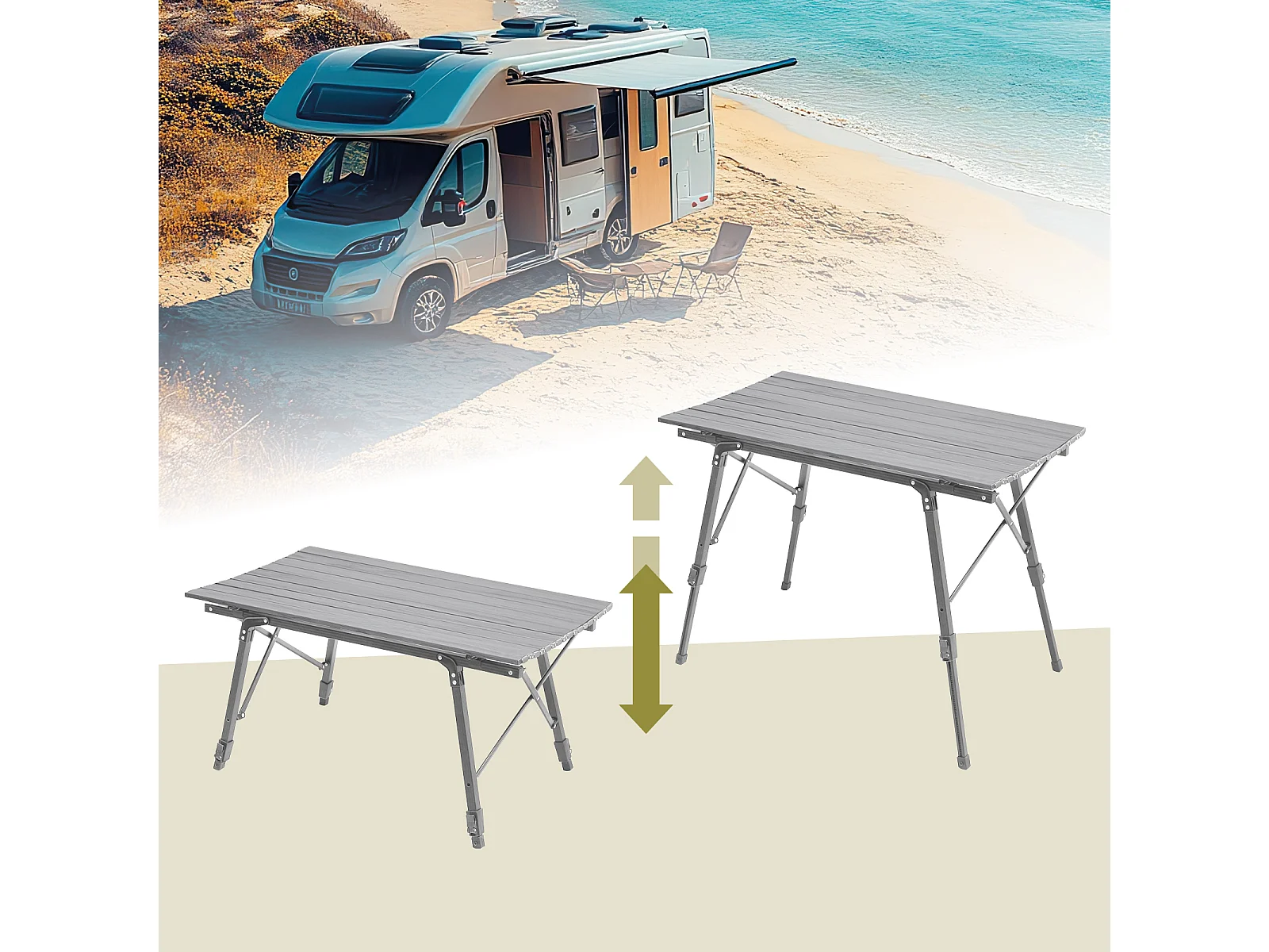 Table de camping pliable JAWINIO, table pliante réglable en hauteur, aluminium argent