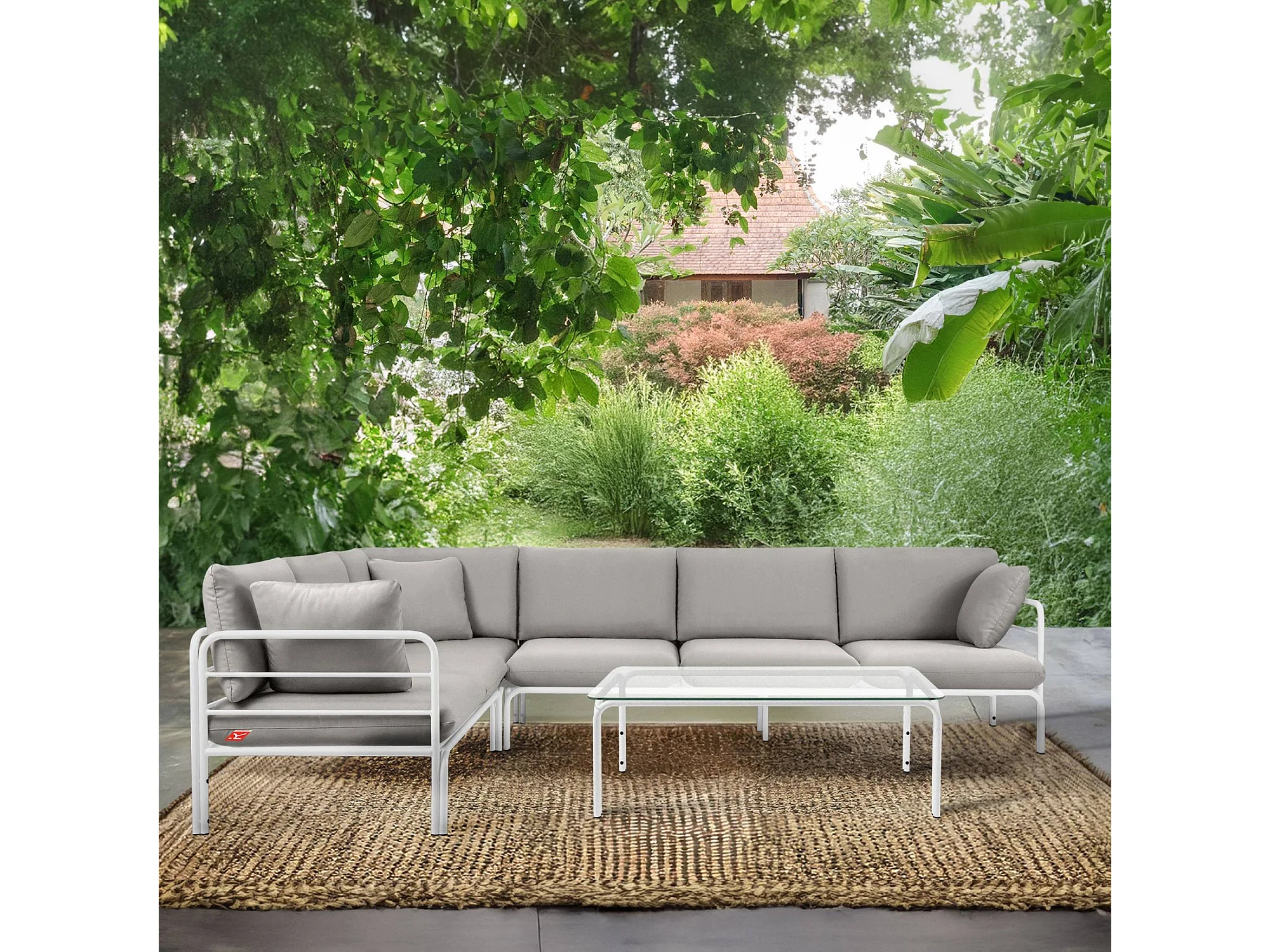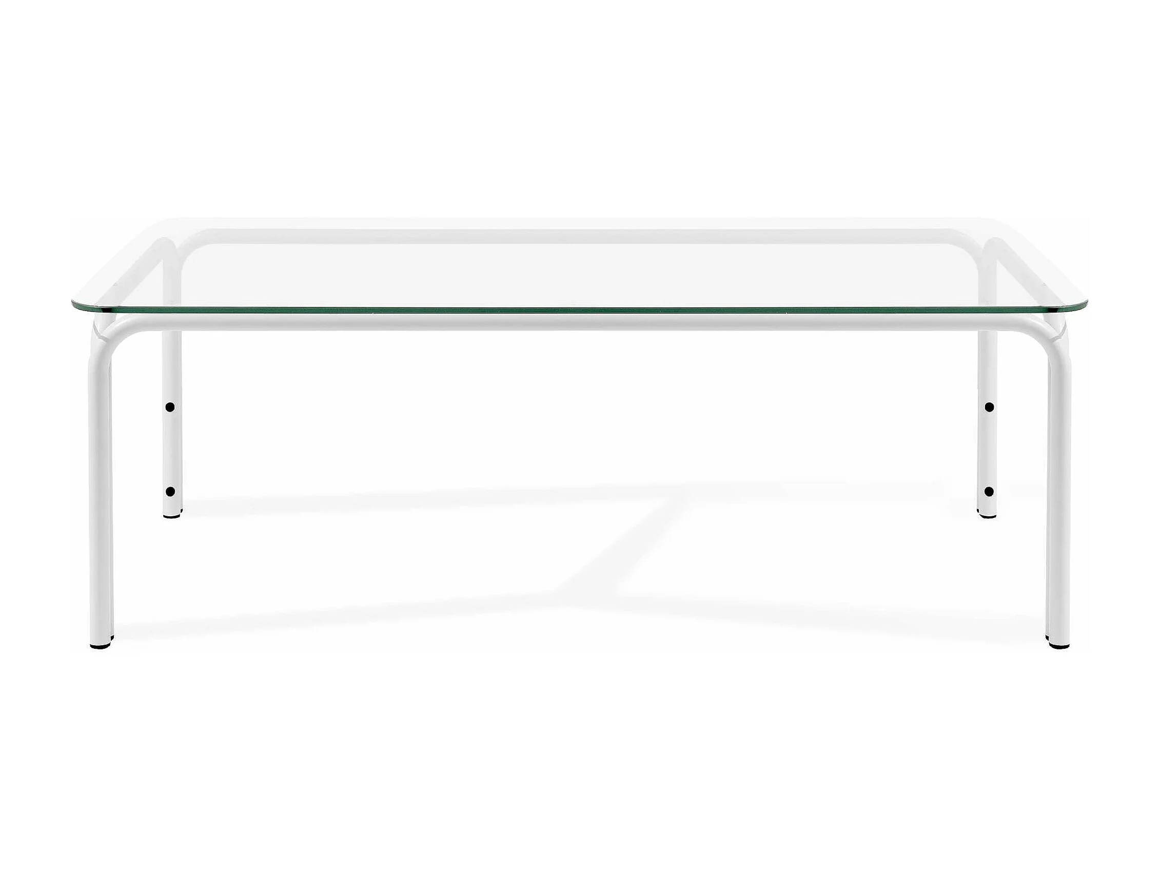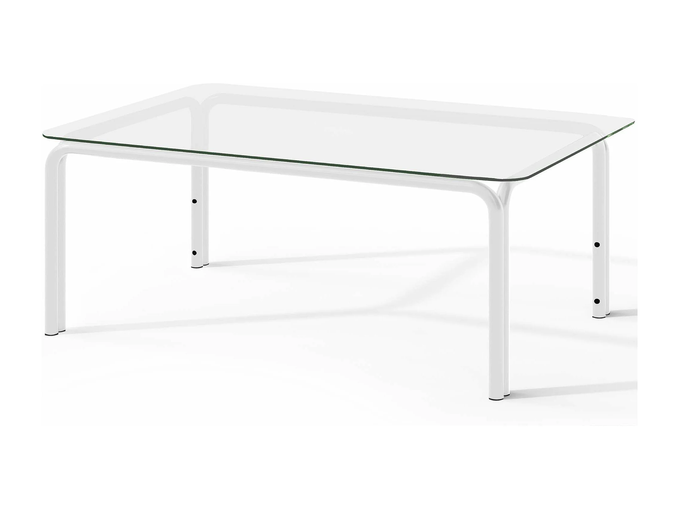 Table de jardin RAMBE blanc, dimensions 125x42x65 cm, parfait pour terrasses
