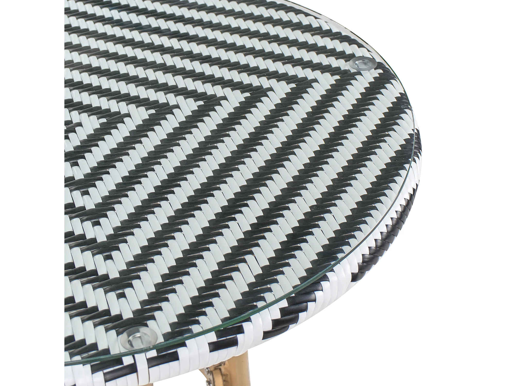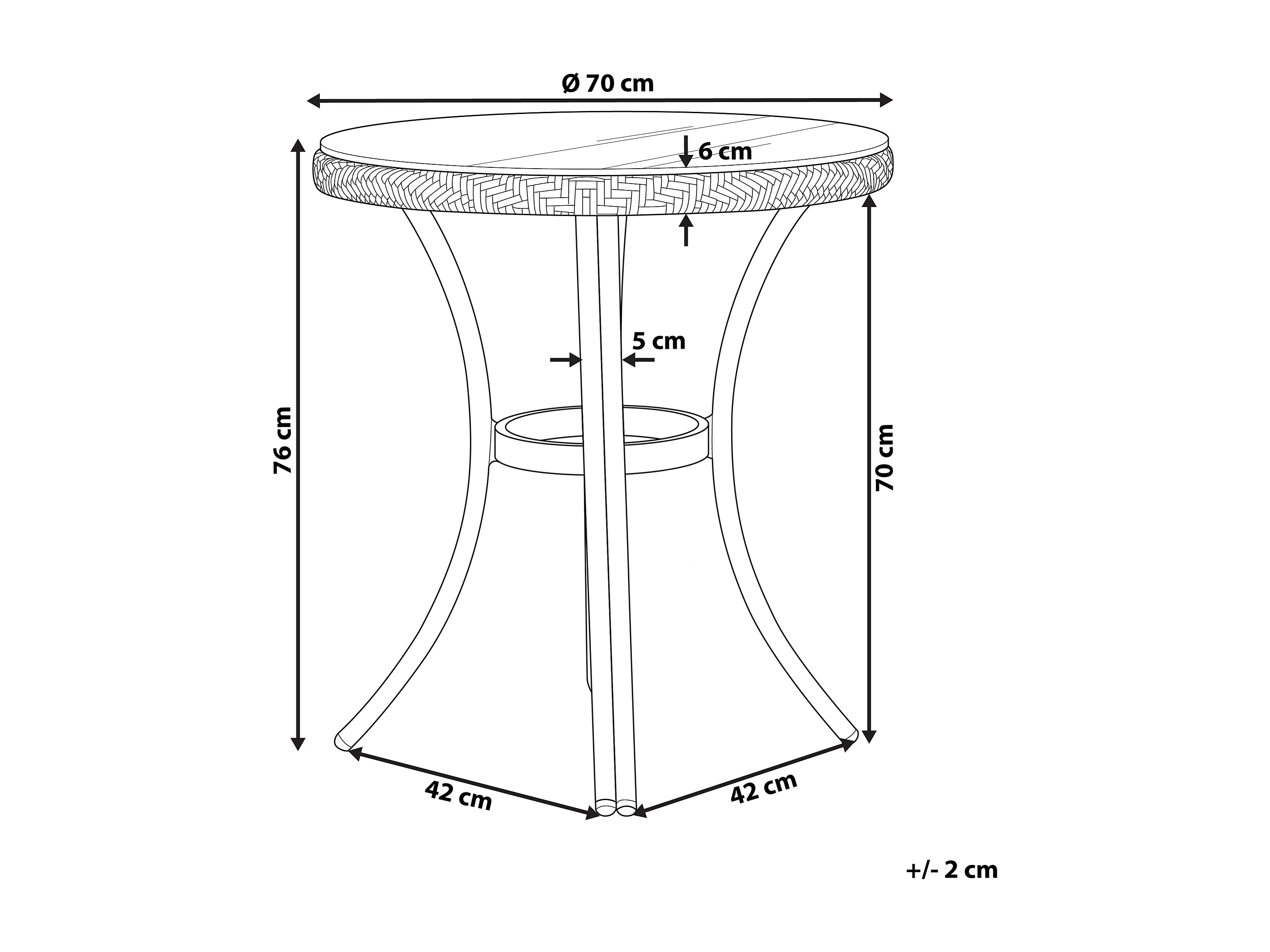 Table de jardin Ø60x75 cm Verre trempé/résine tressée Beige