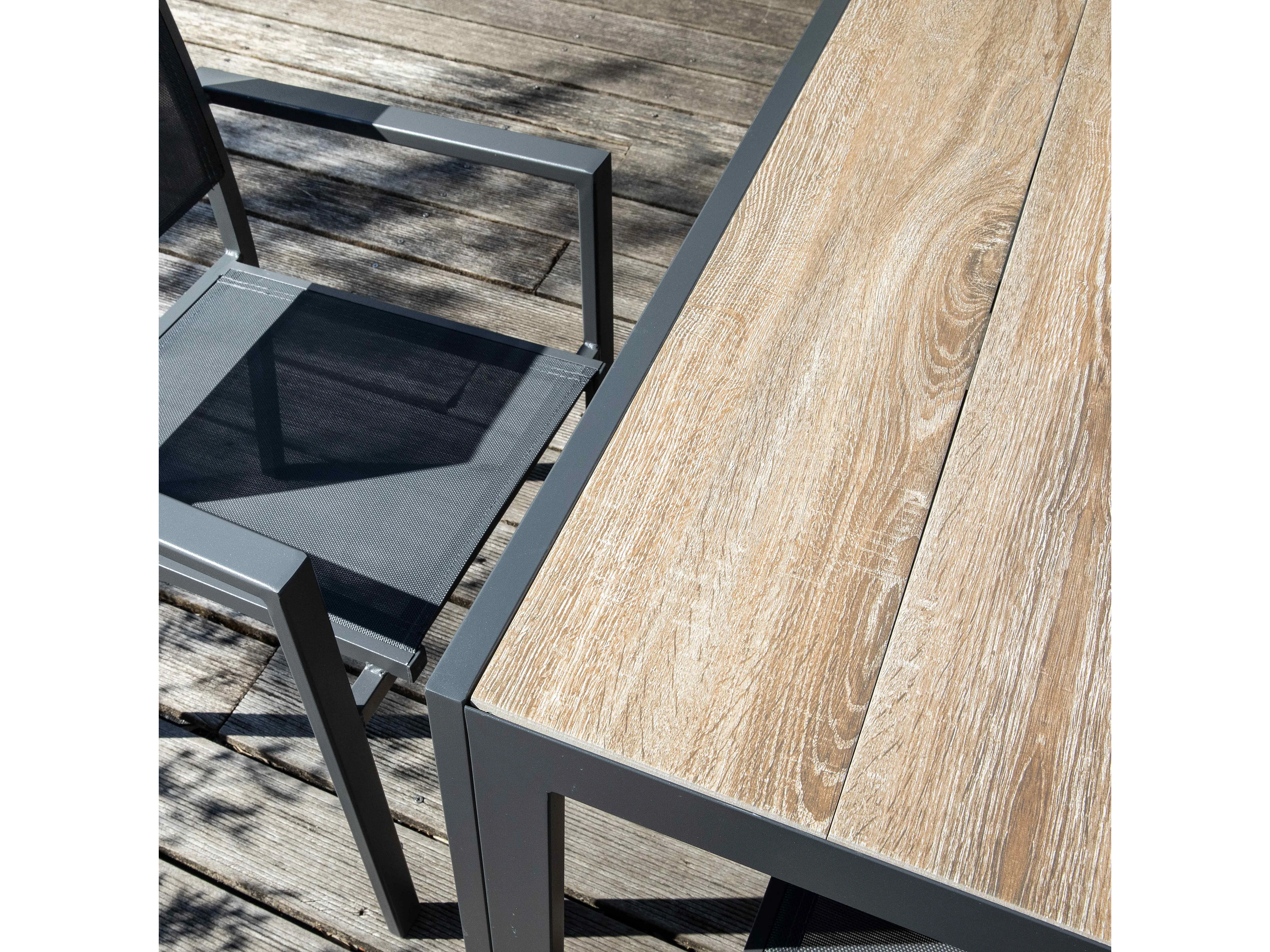 Table de jardin structure aluminium et céramique aspect bois - Tivoli