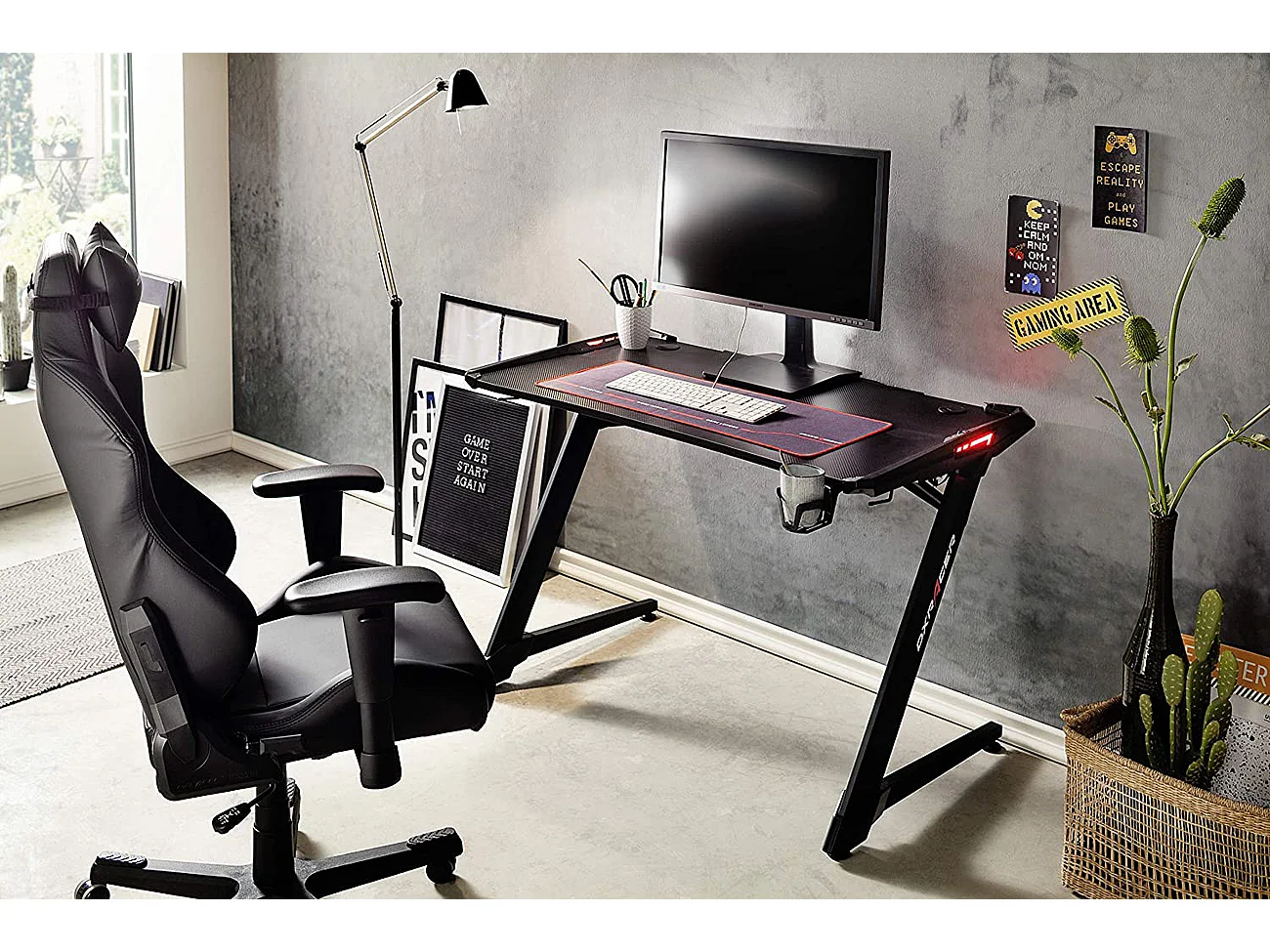 Table de jeu / bureau de jeu à éclairage changeant de couleur LED noir - Longueur 120 x Hauteur 77 x Profondeur 64 cm