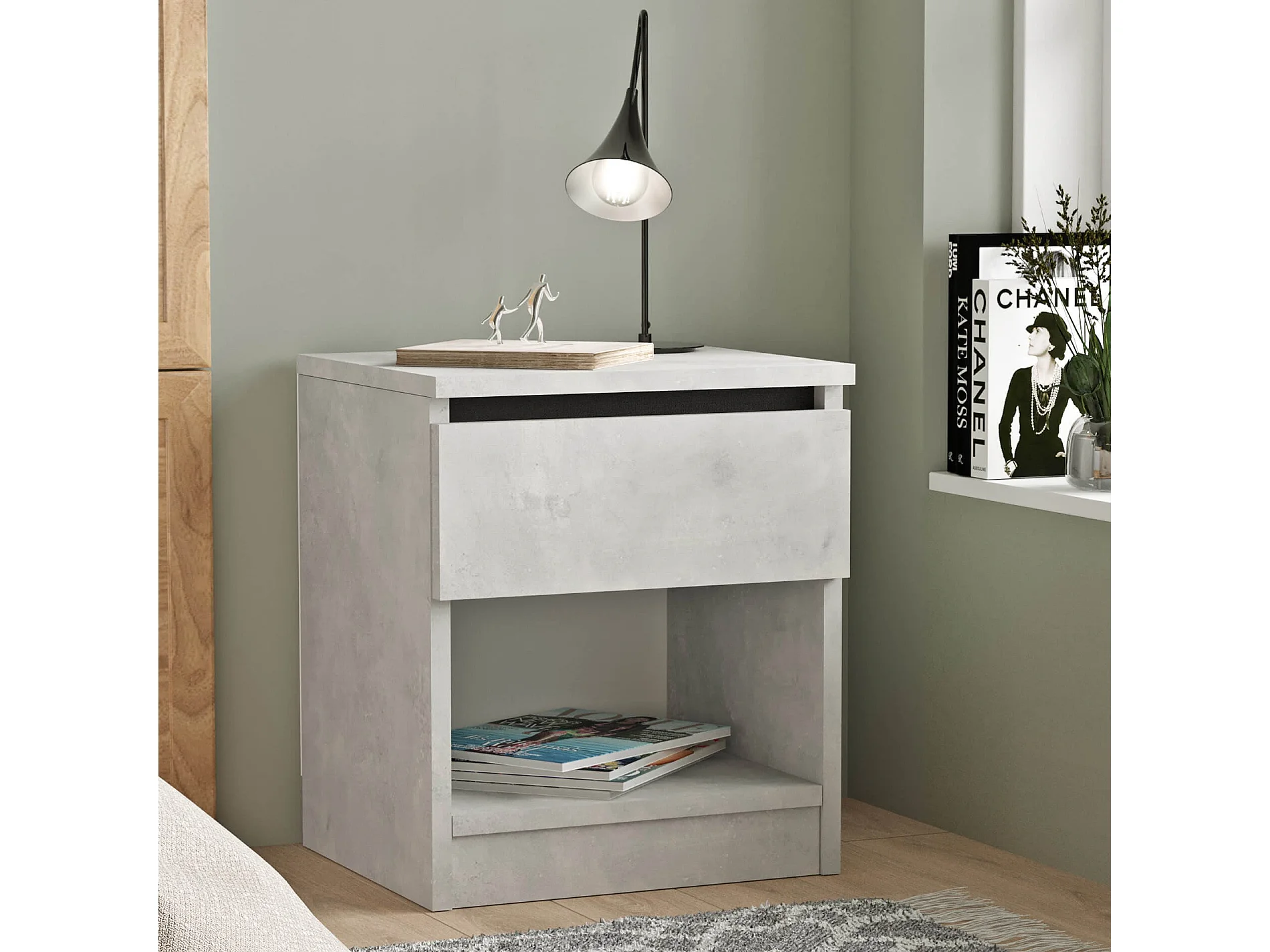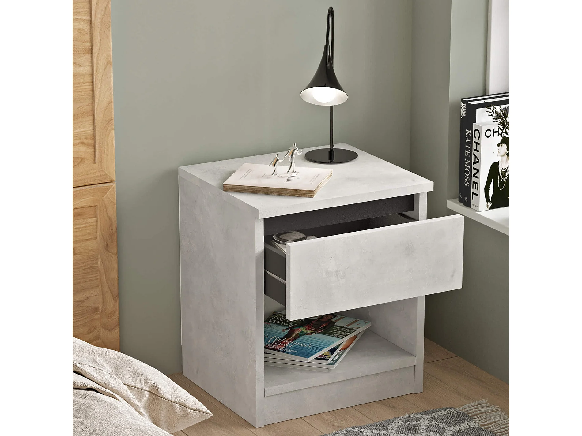 Table de nuit 1 tiroir Rebecca Mobili Kanuka 46,5x40x35,5 Panneau de particules Gris Pierre Moderne