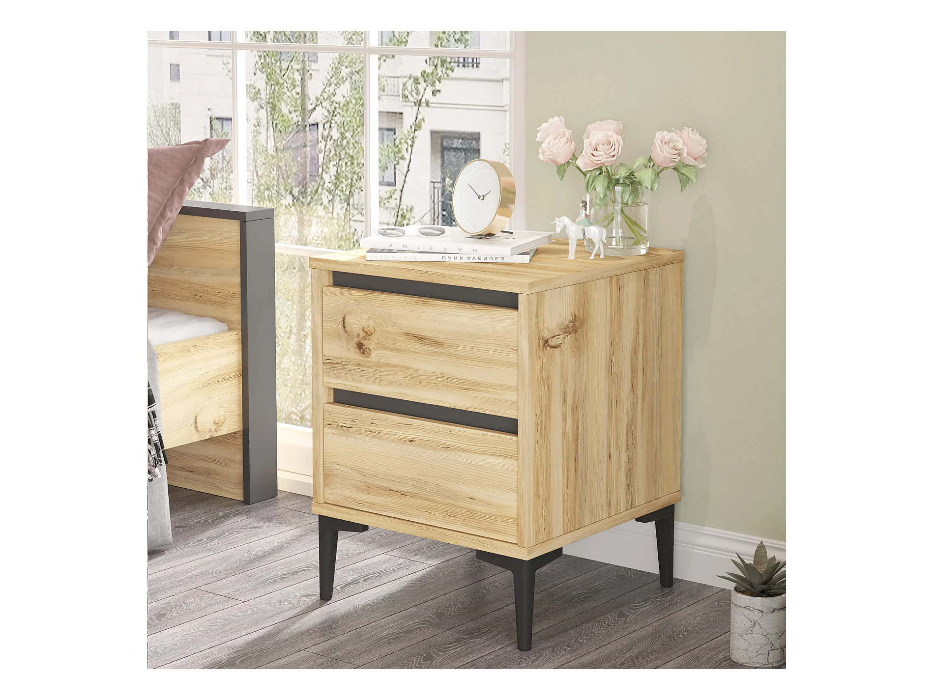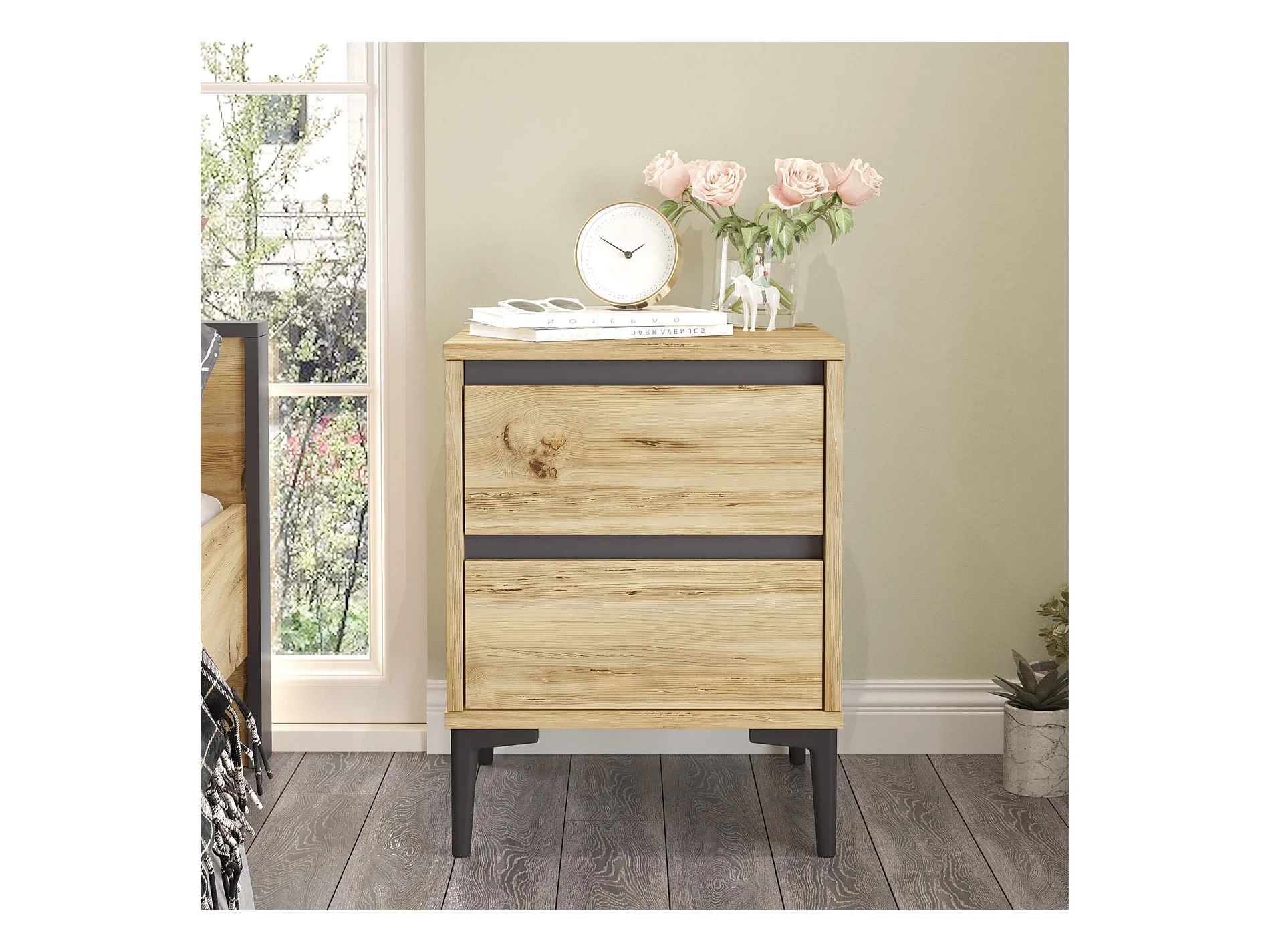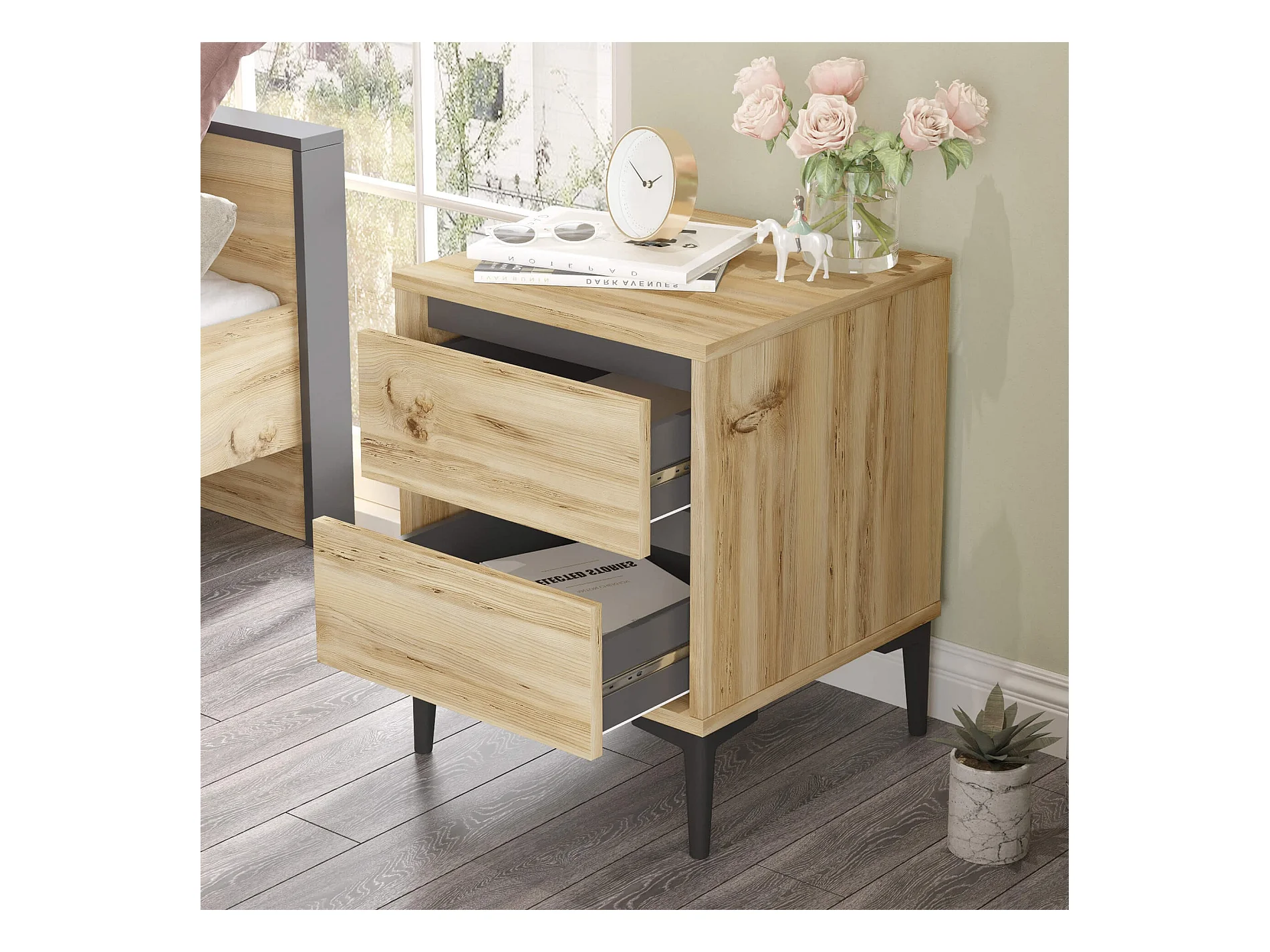 Table de nuit 2 tiroirs Rebecca Mobili Okwara 58,5x45x45 Panneau de particules PVC Chêne Clair Gris Foncé Moderne