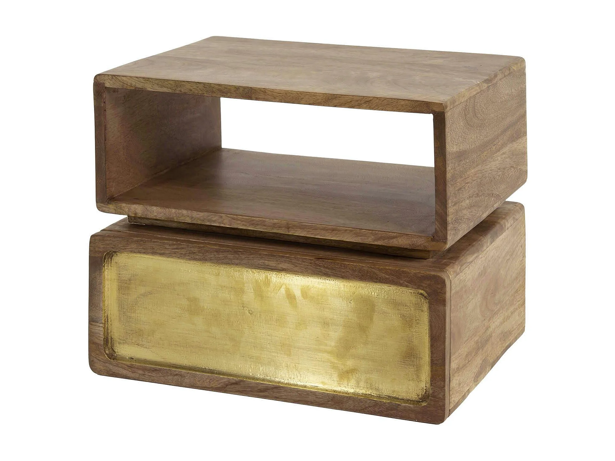 Table de nuit murale en bois de manguier, 1 tiroir finition cuivrée VARA