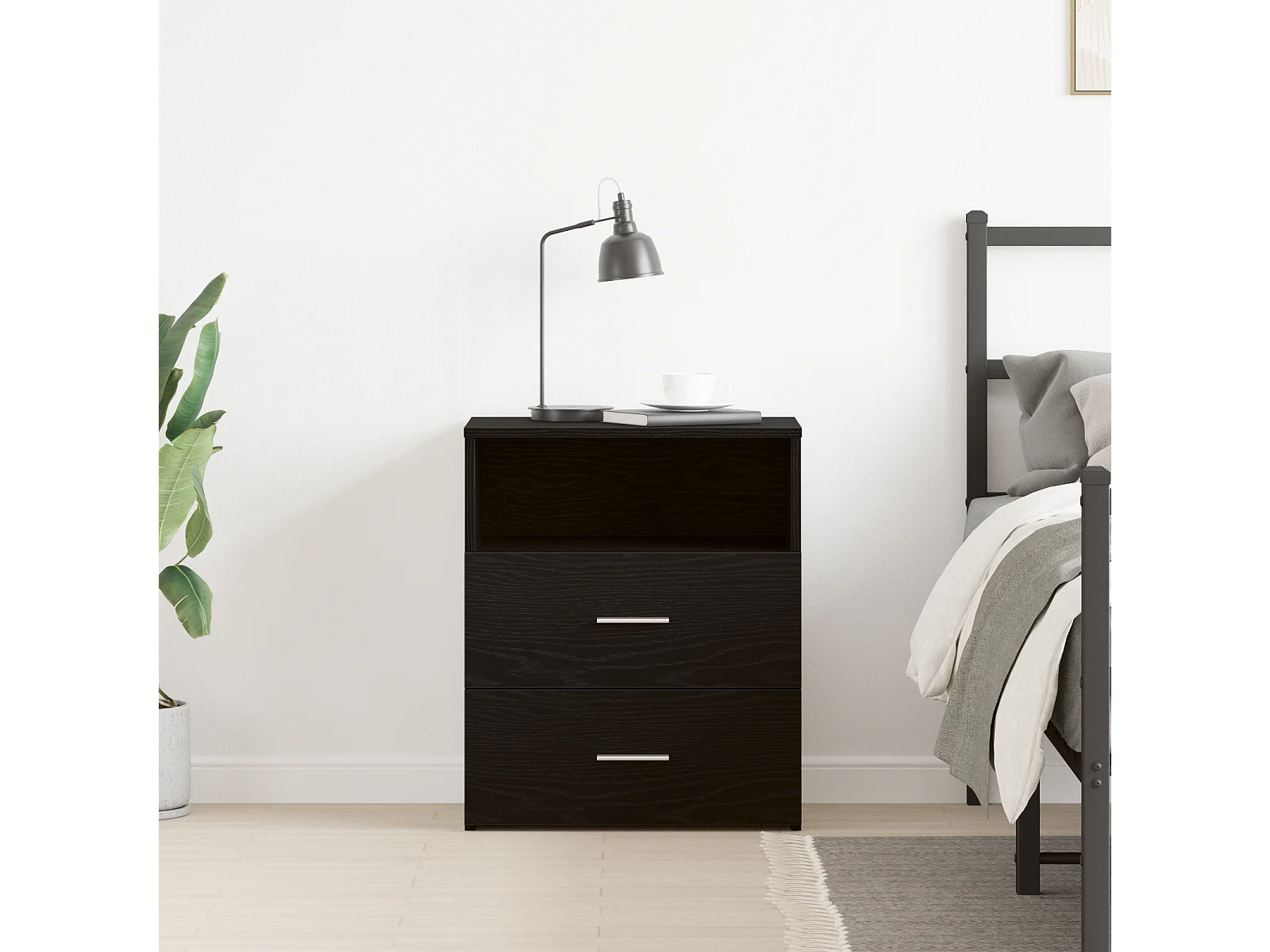 table de nuit noir chêne 50x32x60cm en bois d'ingénierie