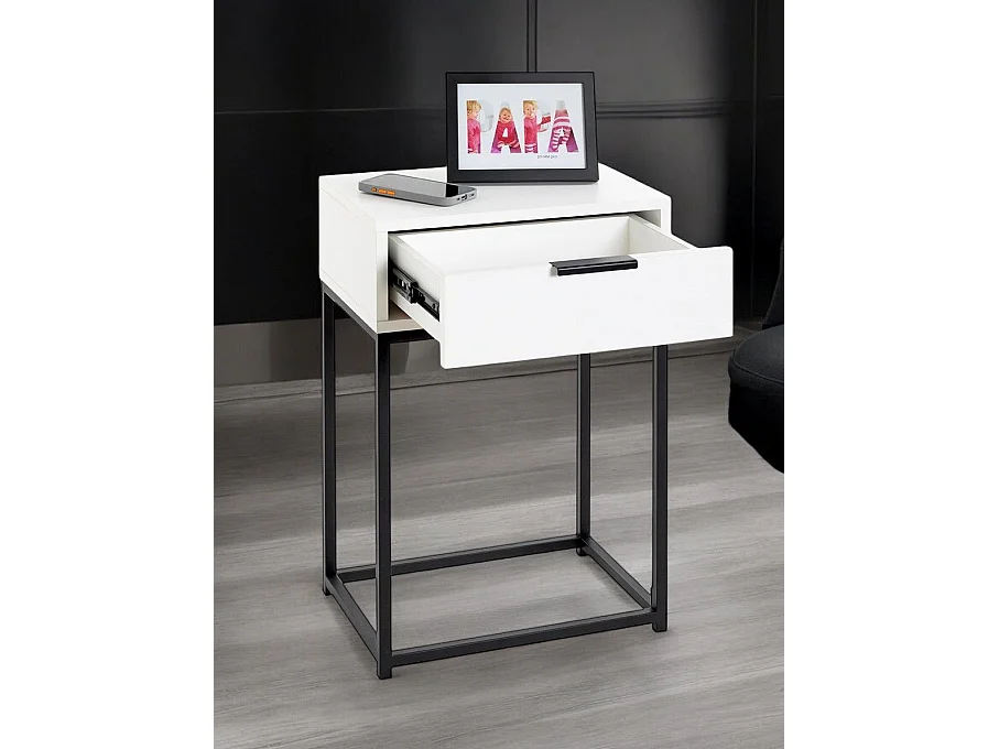 Table de nuit, table de chevet 1 tiroir coloris Blanc métal Noir - Longueur 40 x Profondeur 28 x Hauteur 60 cm