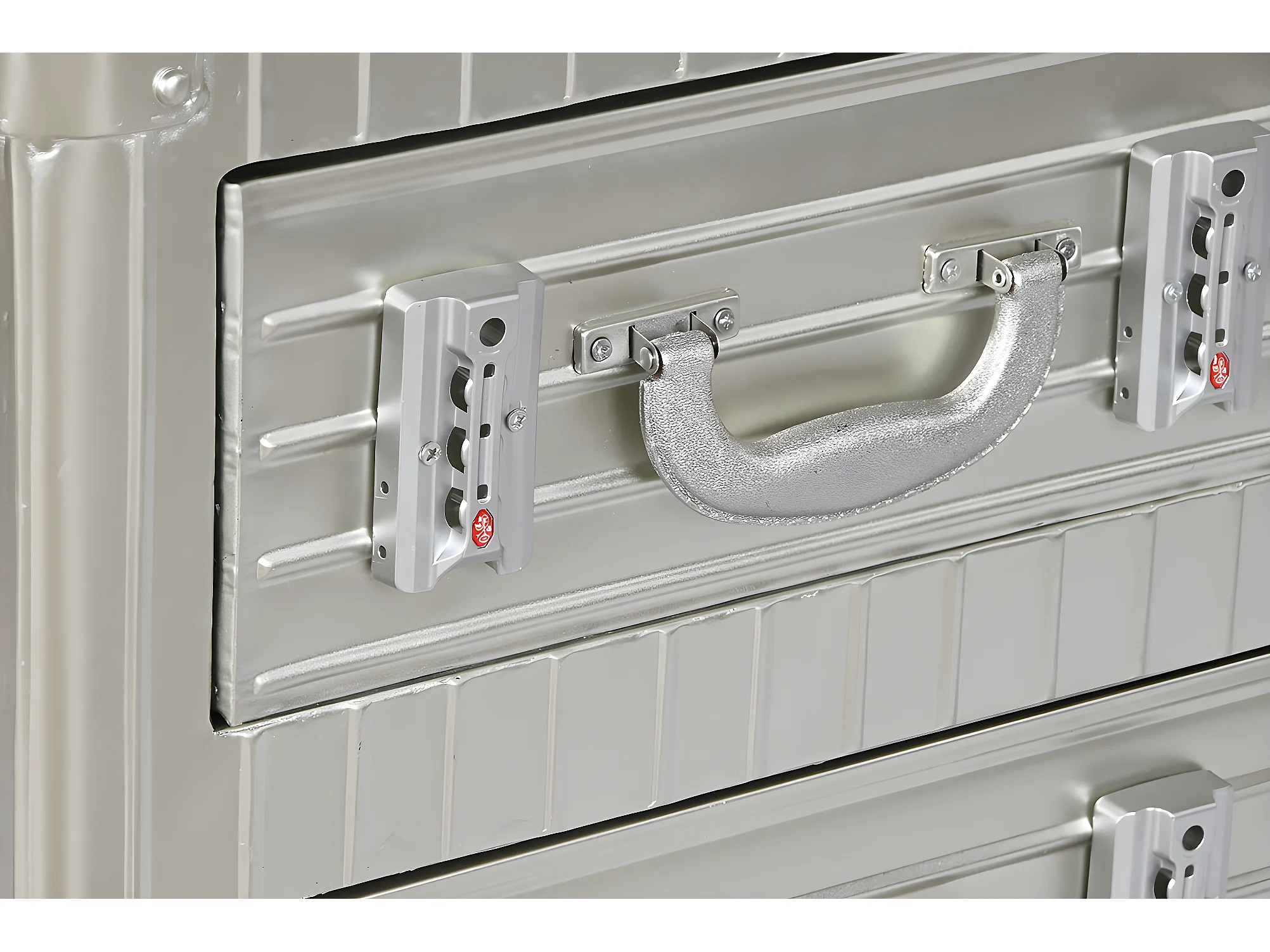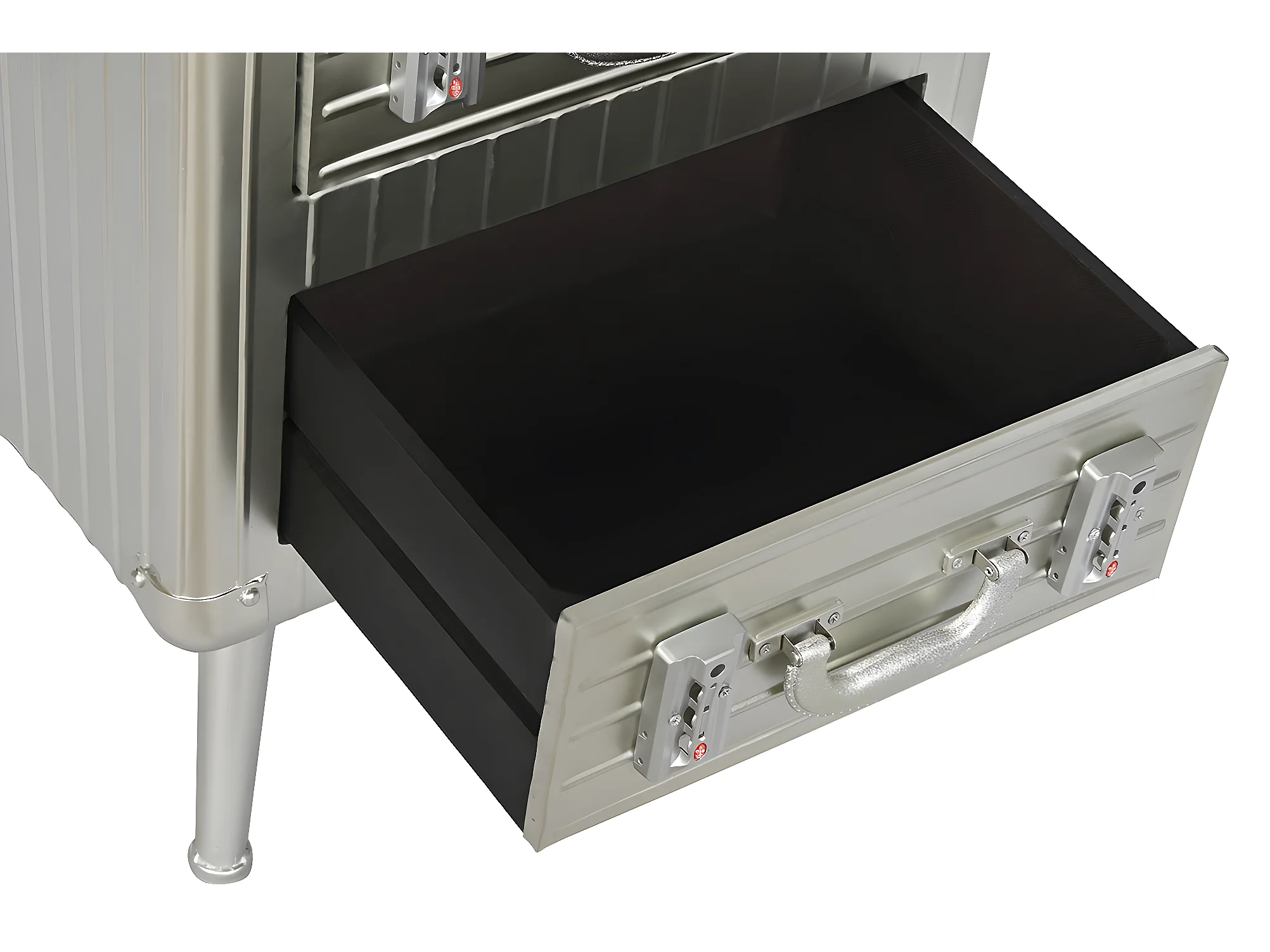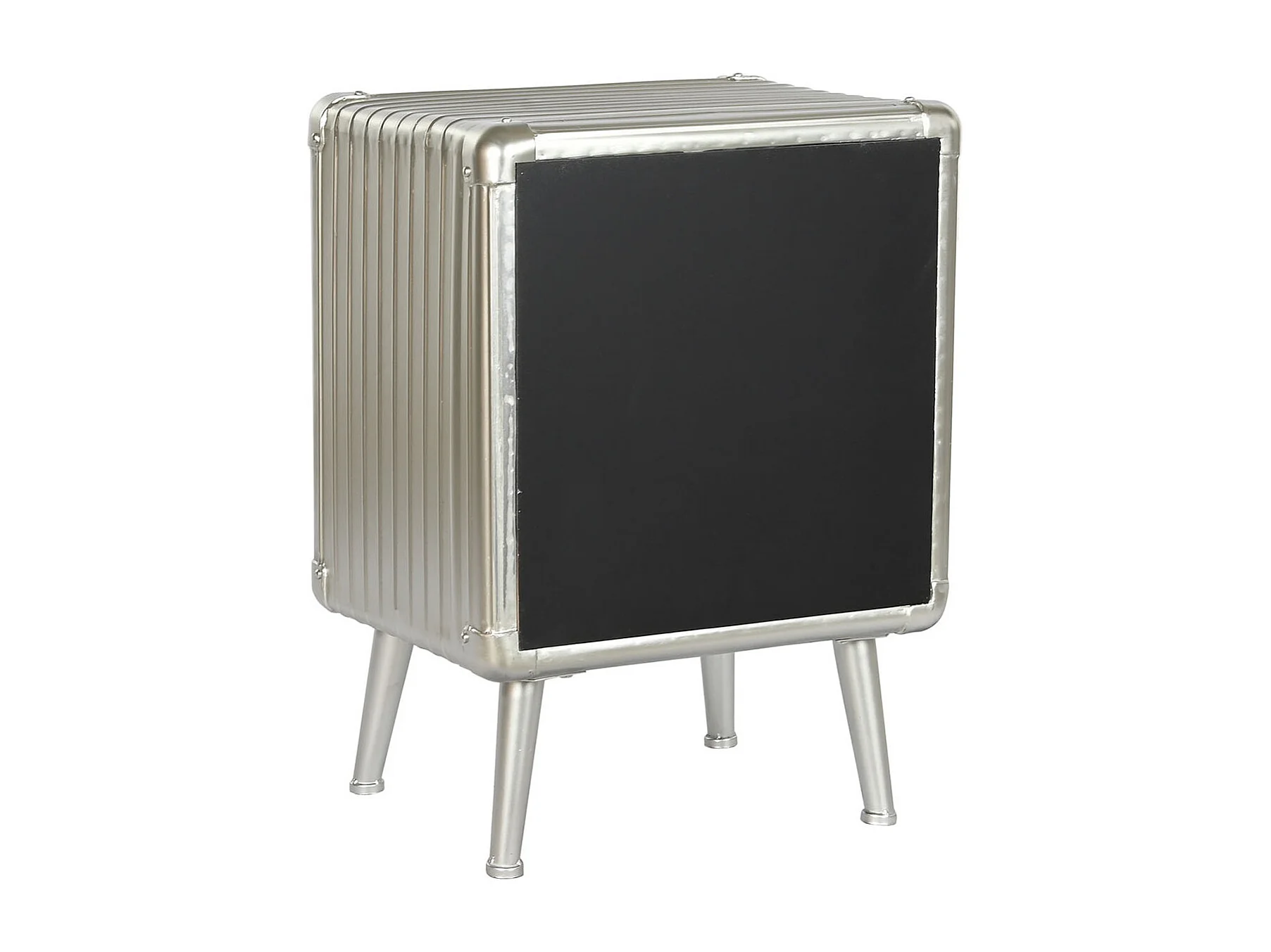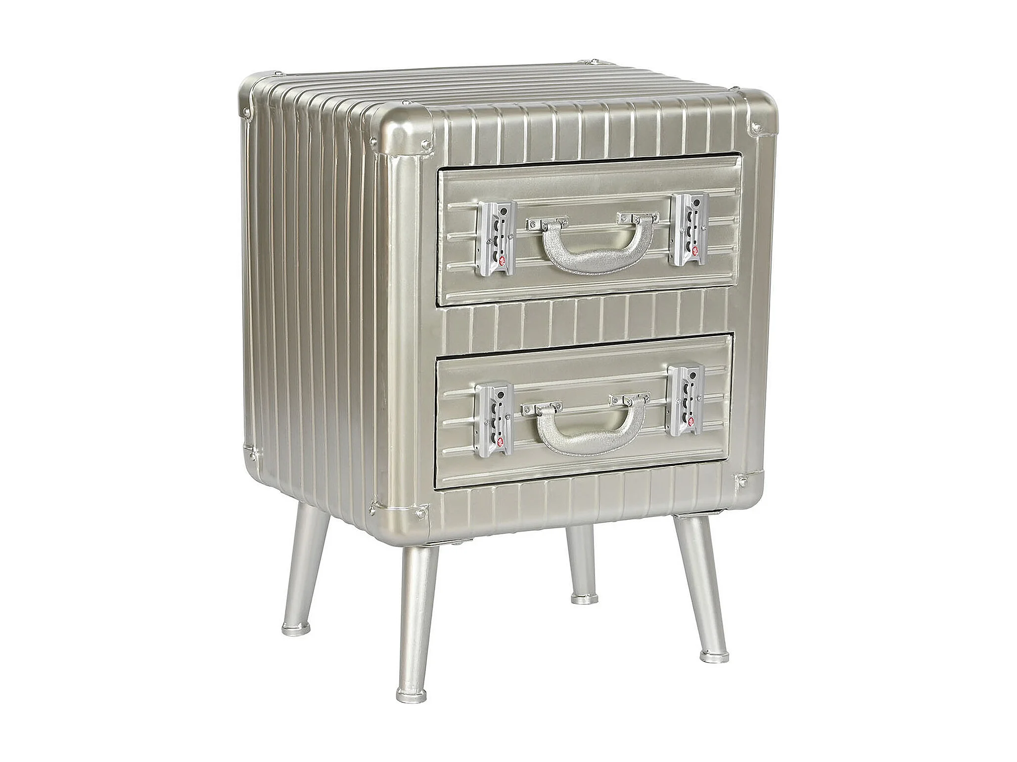 Table de nuit, table de chevet avec 2 tiroirs en bois MDF et métal coloris argenté - longueur 46 x profondeur 39 x Hauteur 63 cm