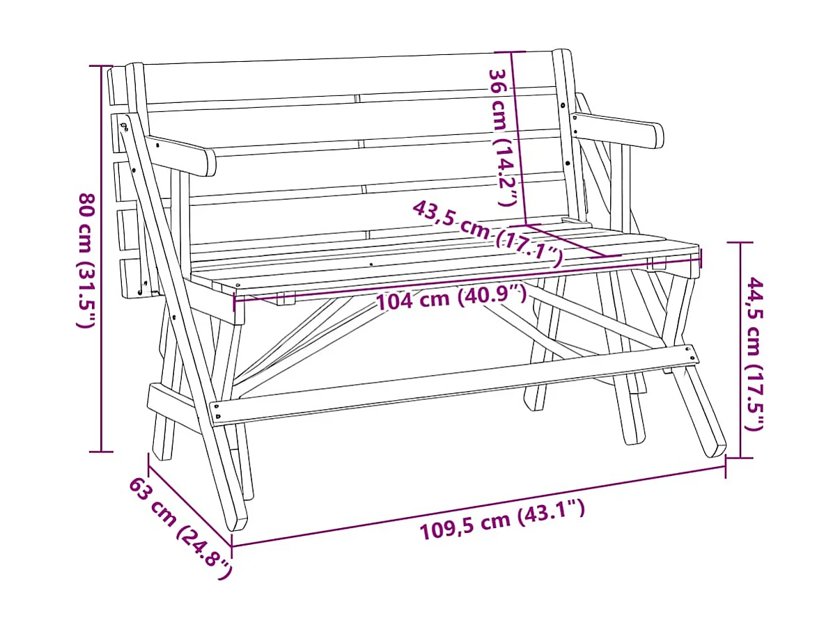 Table de pique-nique avec bancs sapin massif 2 en 1 convertible
