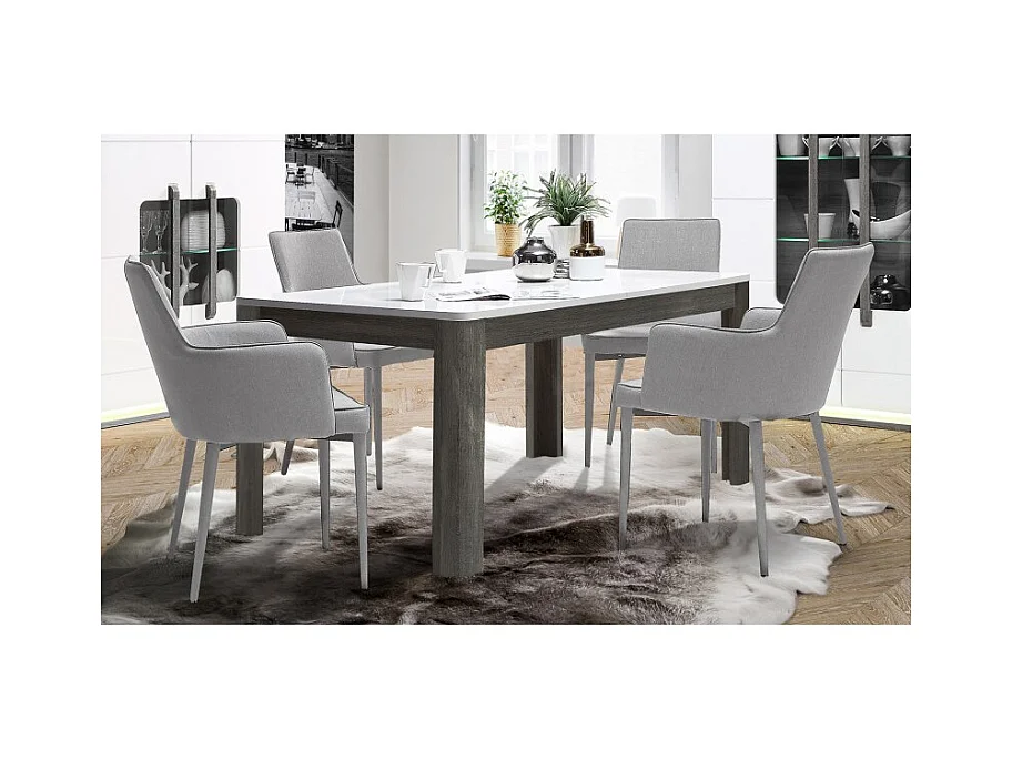 Table extensible 160 à 206 cm blanc laqué décor bois gris - ALEXIANE